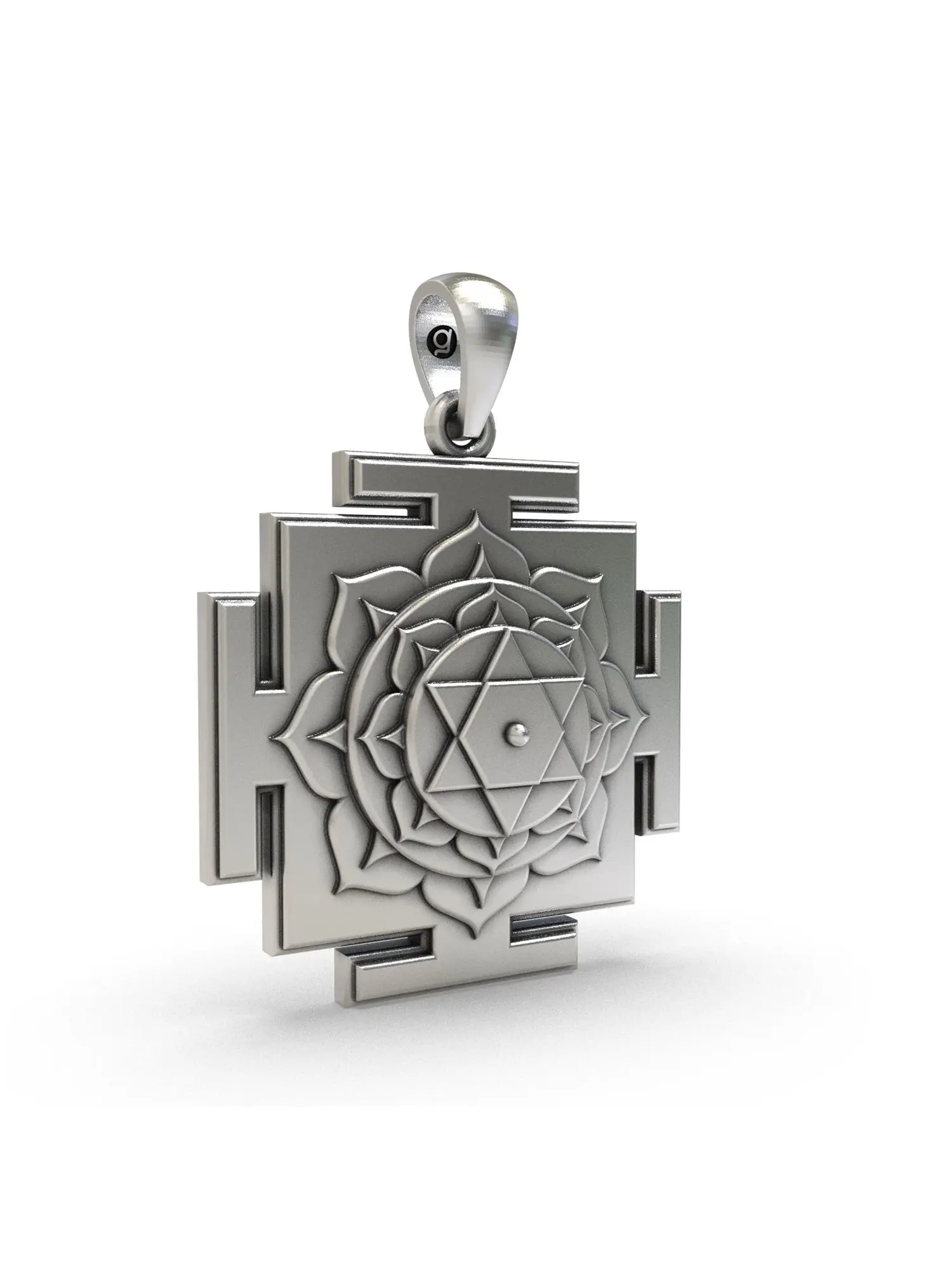 Sacred Kamala Yantra Pendant in Sterling Silver