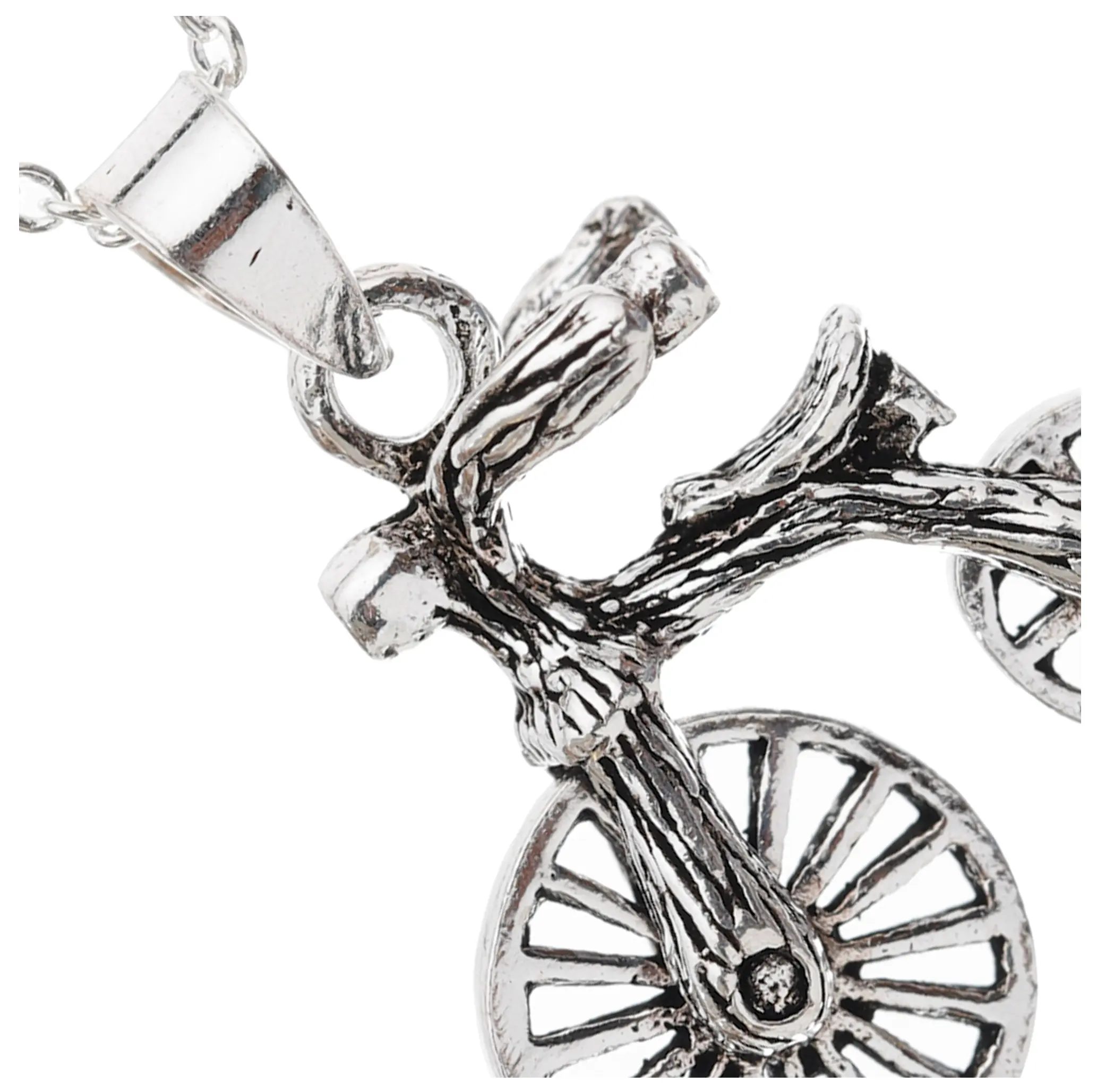 The design evokes a sense of nostalgia, reminiscent of classic bicycles. The intricate detailing on the frame, handlebars, and even the spokes of the wheels showcases the artisanal quality of the piece. The rich, lustrous finish of the sterling silver enhances the vintage aesthetic, making it a sophisticated statement for any jewelry collection. It's a subtle nod to a simpler time, a celebration of enduring style that transcends trends.