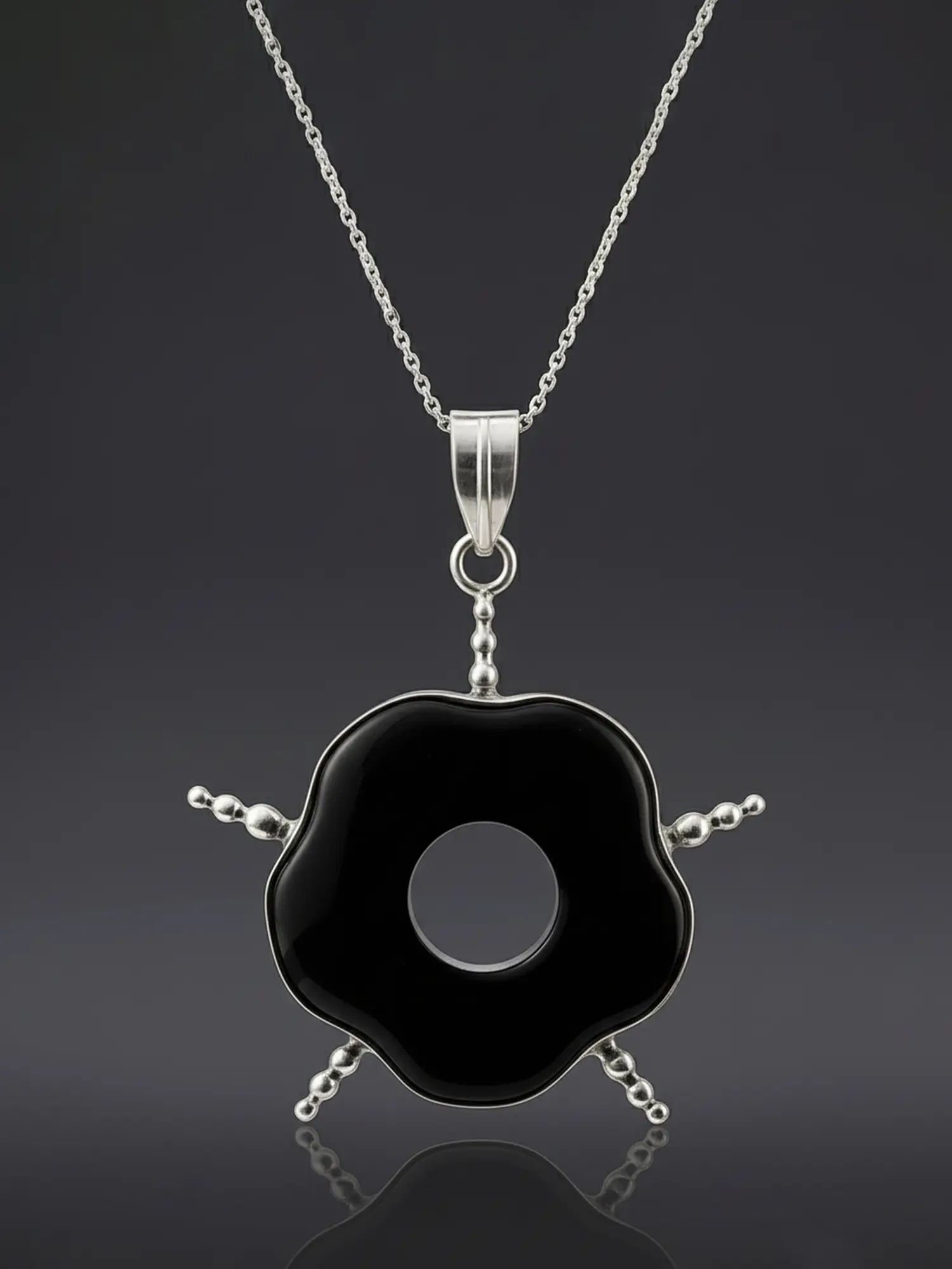 To preserve the brilliant luster of the sterling silver and the deep, unblemished surface of the black onyx, we recommend gentle cleaning with a soft, dry cloth. Avoid exposure to harsh chemicals or abrasive materials. Stored separately in a soft pouch or jewelry box, this piece will retain its captivating allure for generations, becoming a treasured heirloom that reflects your discerning taste and appreciation for timeless artistry.