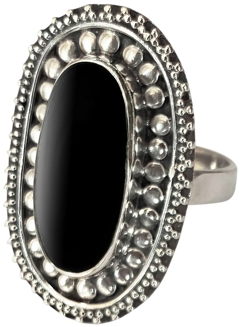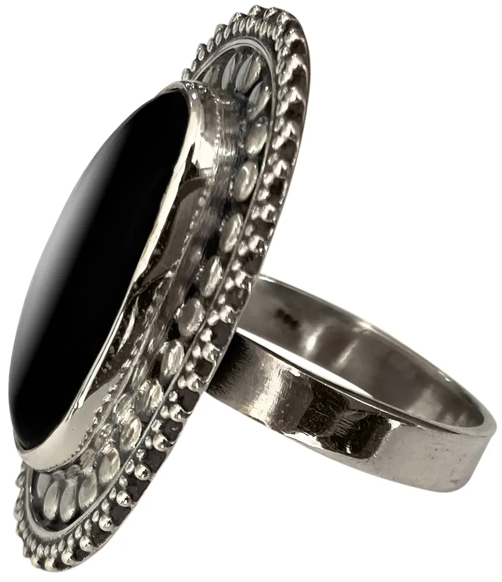 To maintain its exquisite shine, we recommend gentle polishing with a soft, dry cloth. Avoid harsh chemicals or abrasive cleaners. With proper care, this sterling silver creation, featuring its captivating black onyx, will remain a cherished heirloom, its enduring beauty a constant source of admiration.