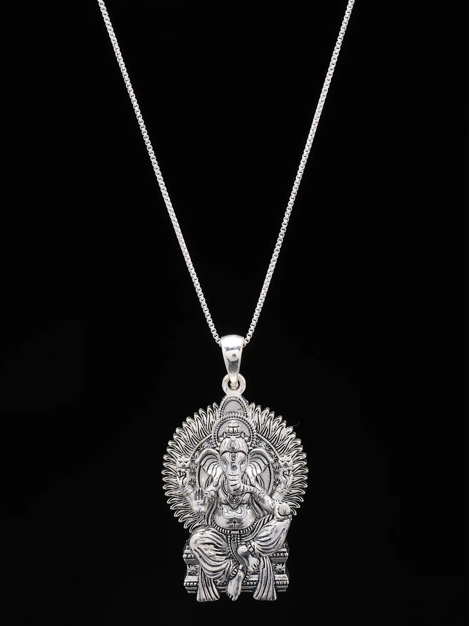 Chaturbhuja Lord Ganesha Seated on Lotus Pendant