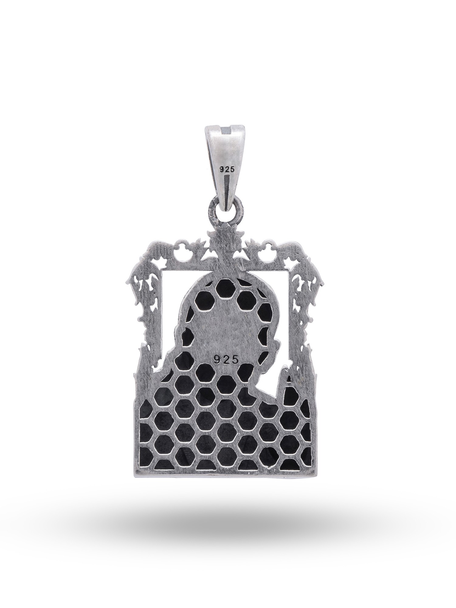 This pendant is more than just a beautiful object; it's a testament to the skill and artistry of its creator. The intricate details of the frame surrounding the central figure showcase the dedication to producing a high-quality piece. The delicate curves and embellishments of the frame, combined with the serene depiction of the central figure, create a harmonious balance between aesthetic appeal and spiritual significance. Its versatile design makes it suitable for both casual and formal wear, making it a valuable addition to any jewelry collection.