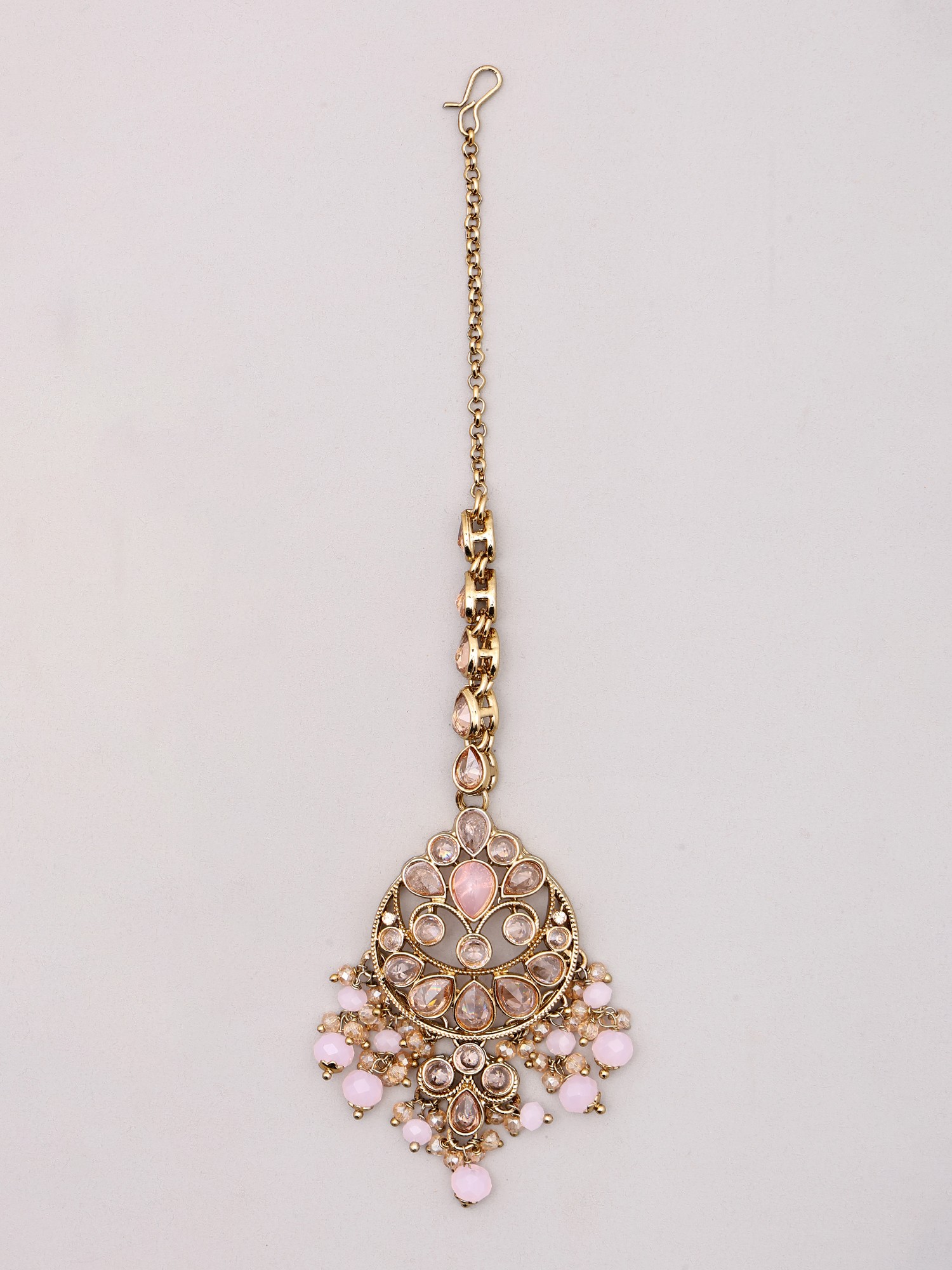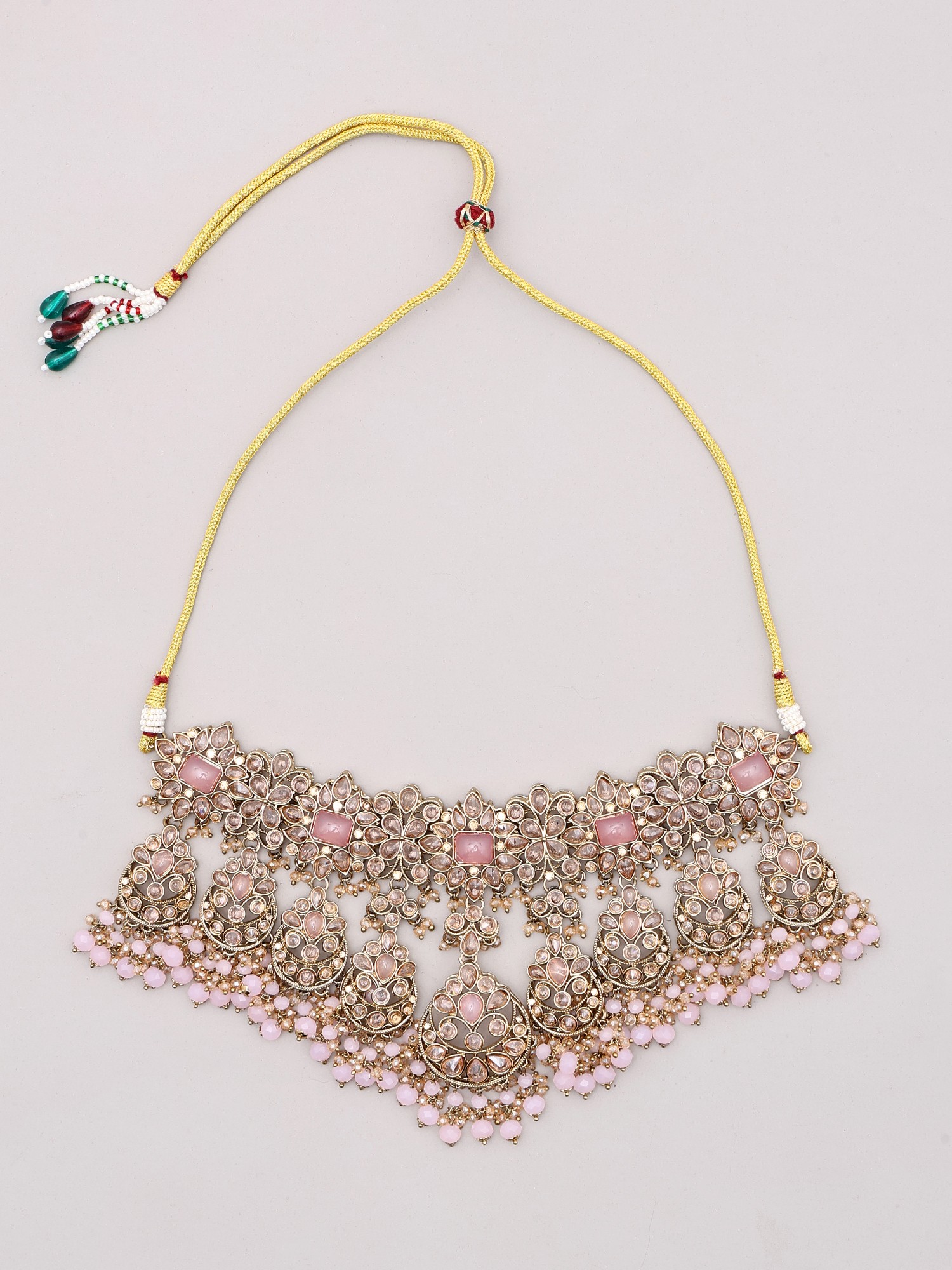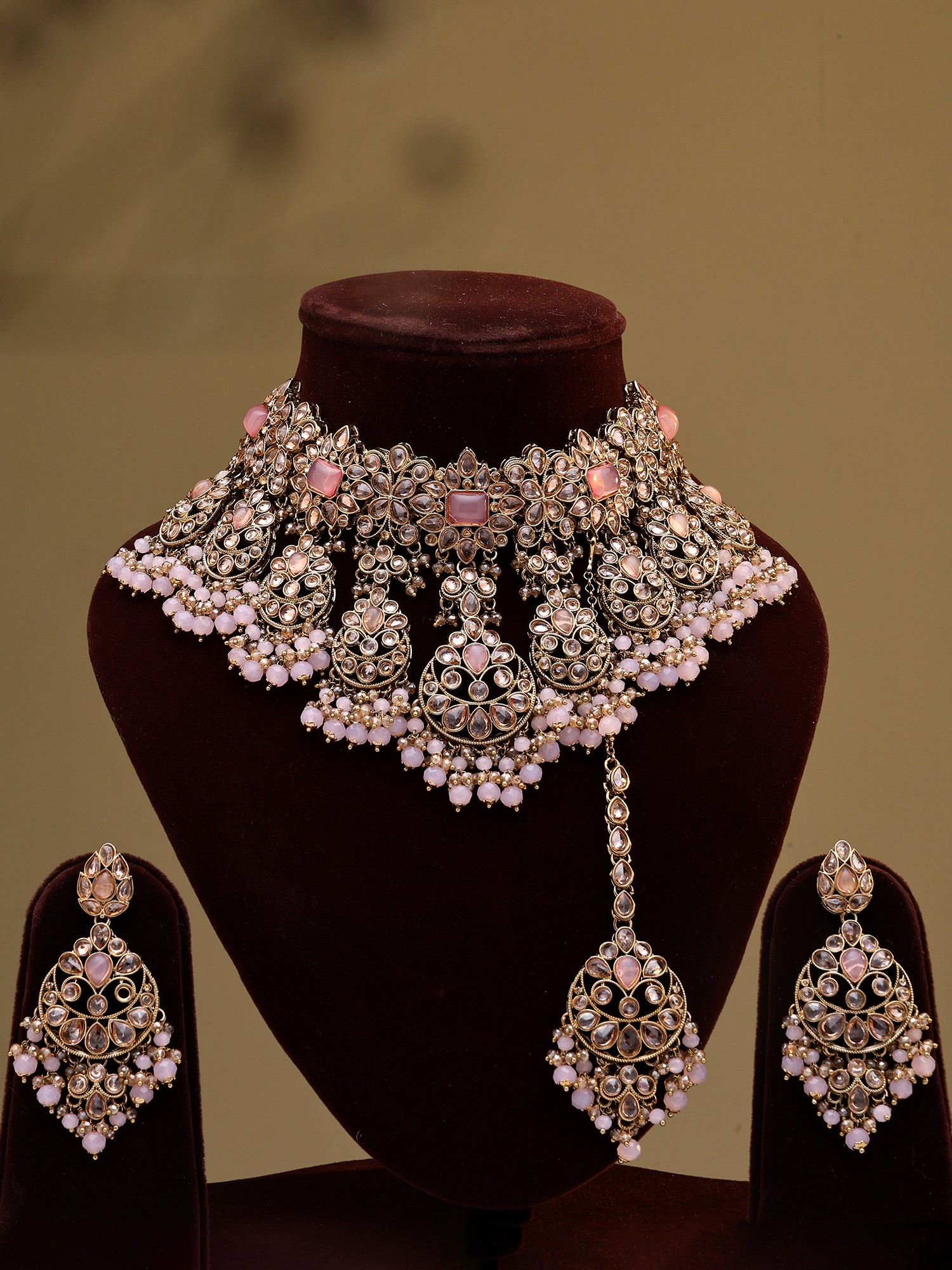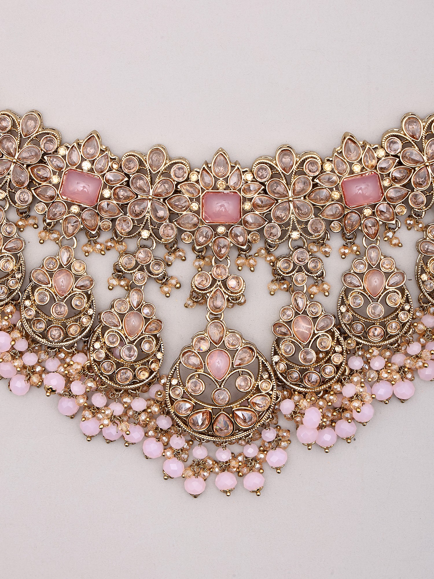 Blush Pink Floral Choker Set with Chandbali Earrings and Mangtika