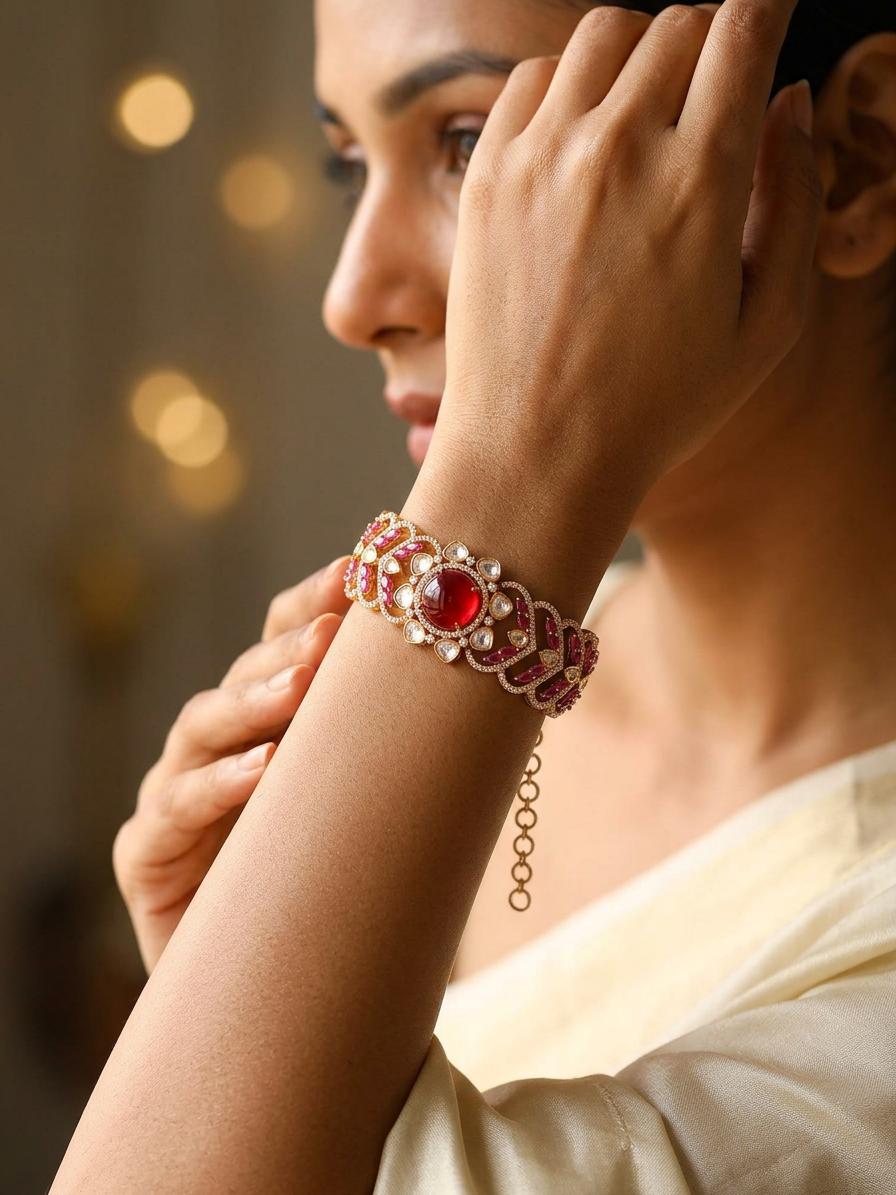 Red Kundan Jadau Stone Studded Adjustable Bracelet