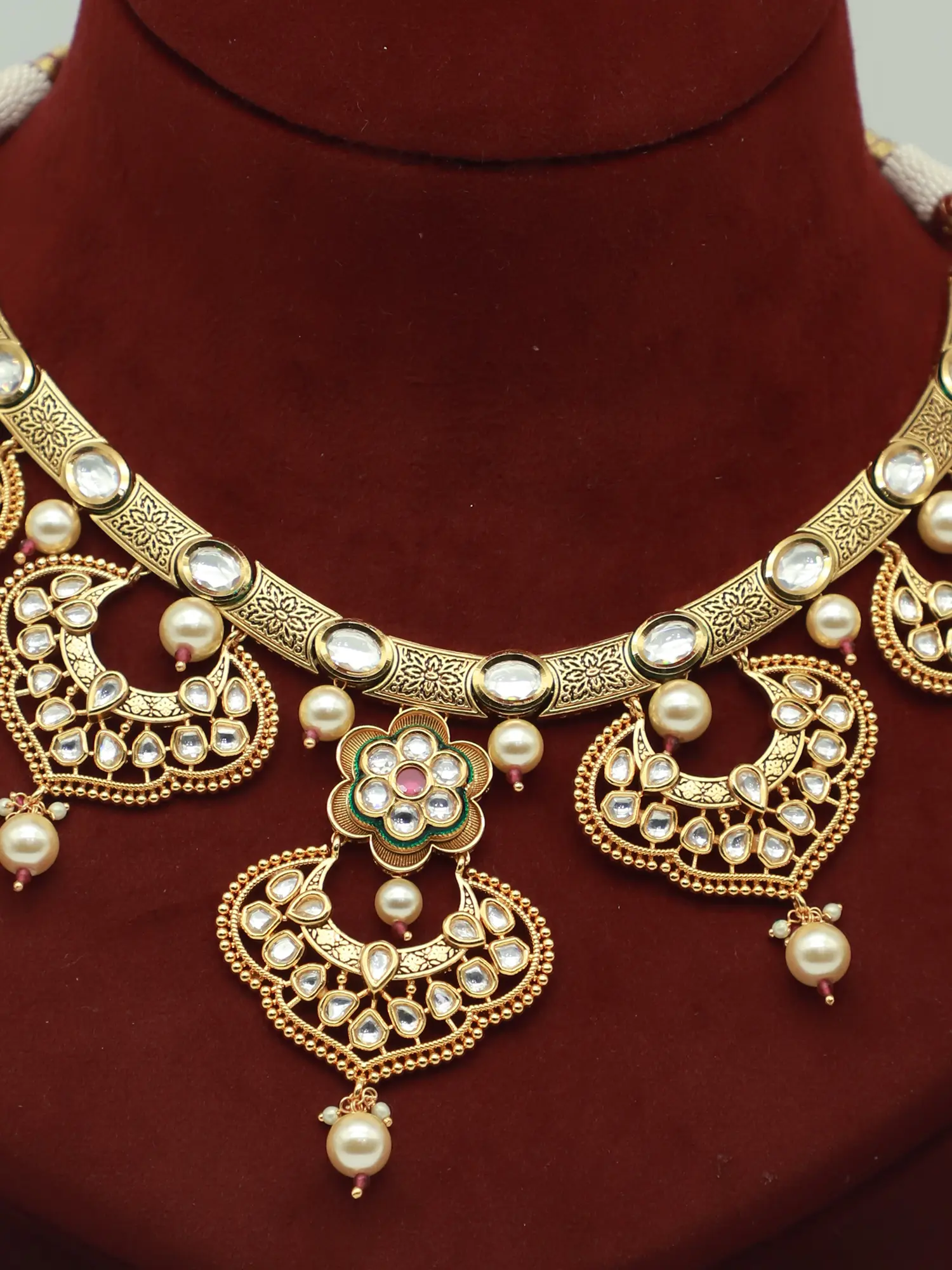 Intricate Carving Bridal Necklace Set With Beautiful Mangtika And Earrings