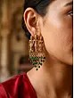Goddess Lakshmi ChandelIer Earrings with Dangling Ruby and Pearls