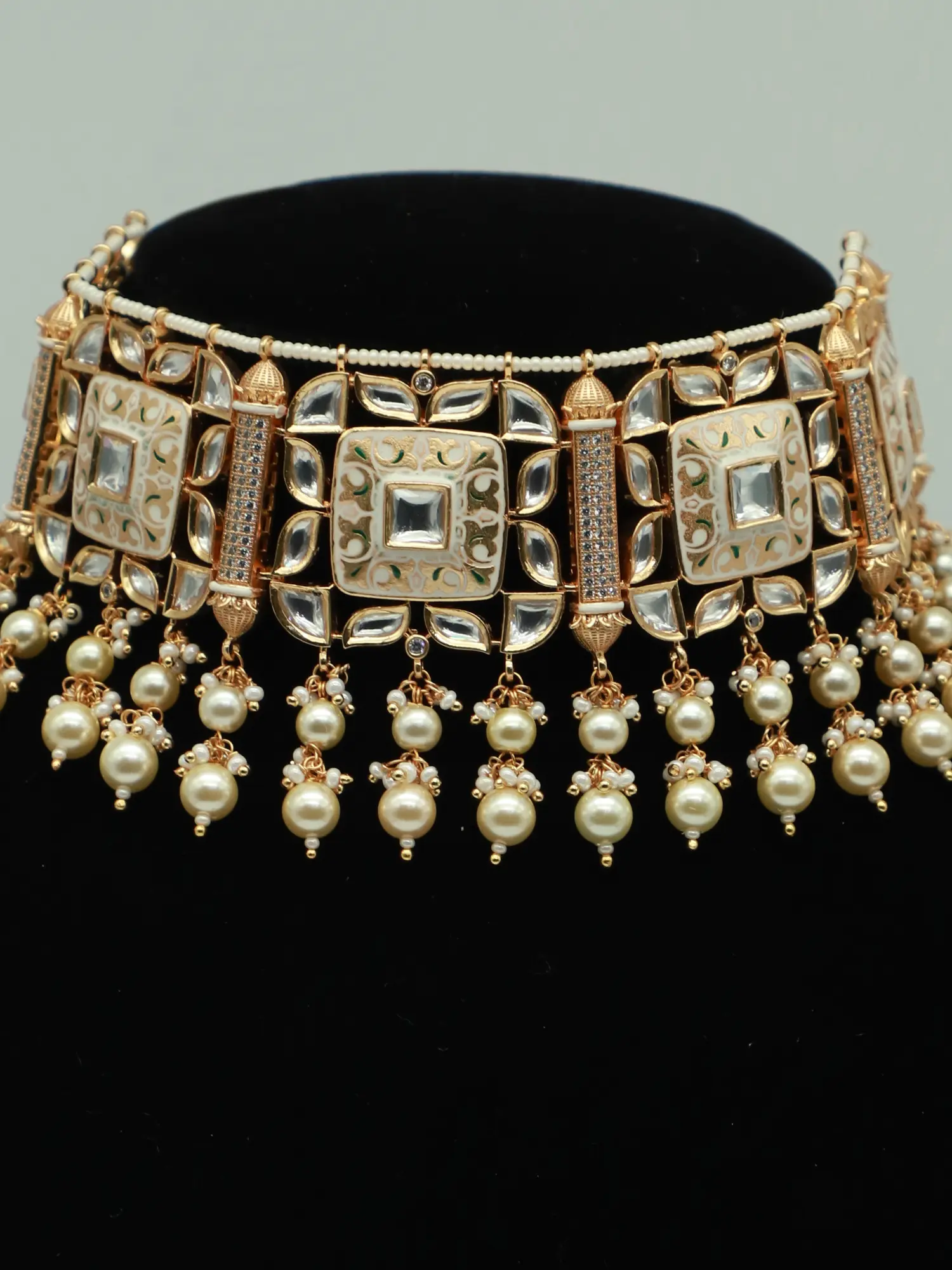 Traditional Meenakari Choker Set And Earrings For Bridal With Kundan And Brass