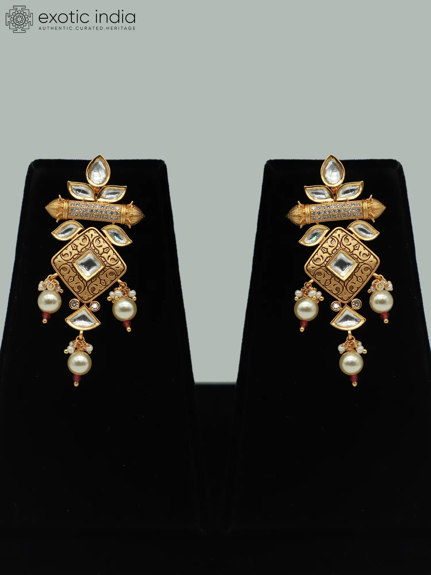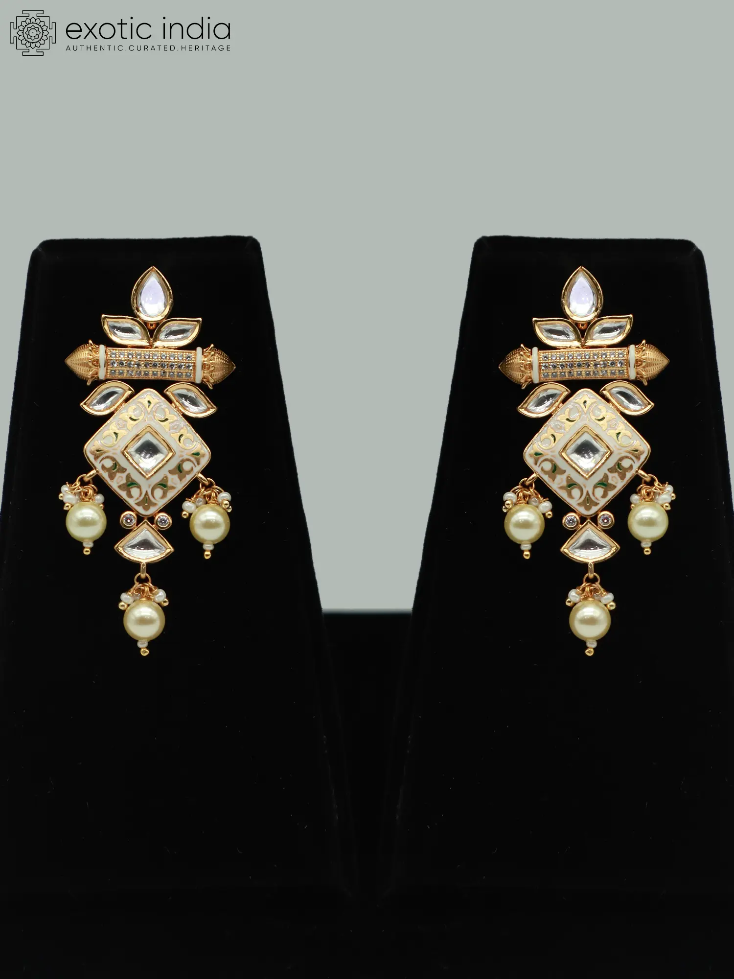 Stunning Moissanite Kundan With Matt Polish Studded Necklace With Earrings