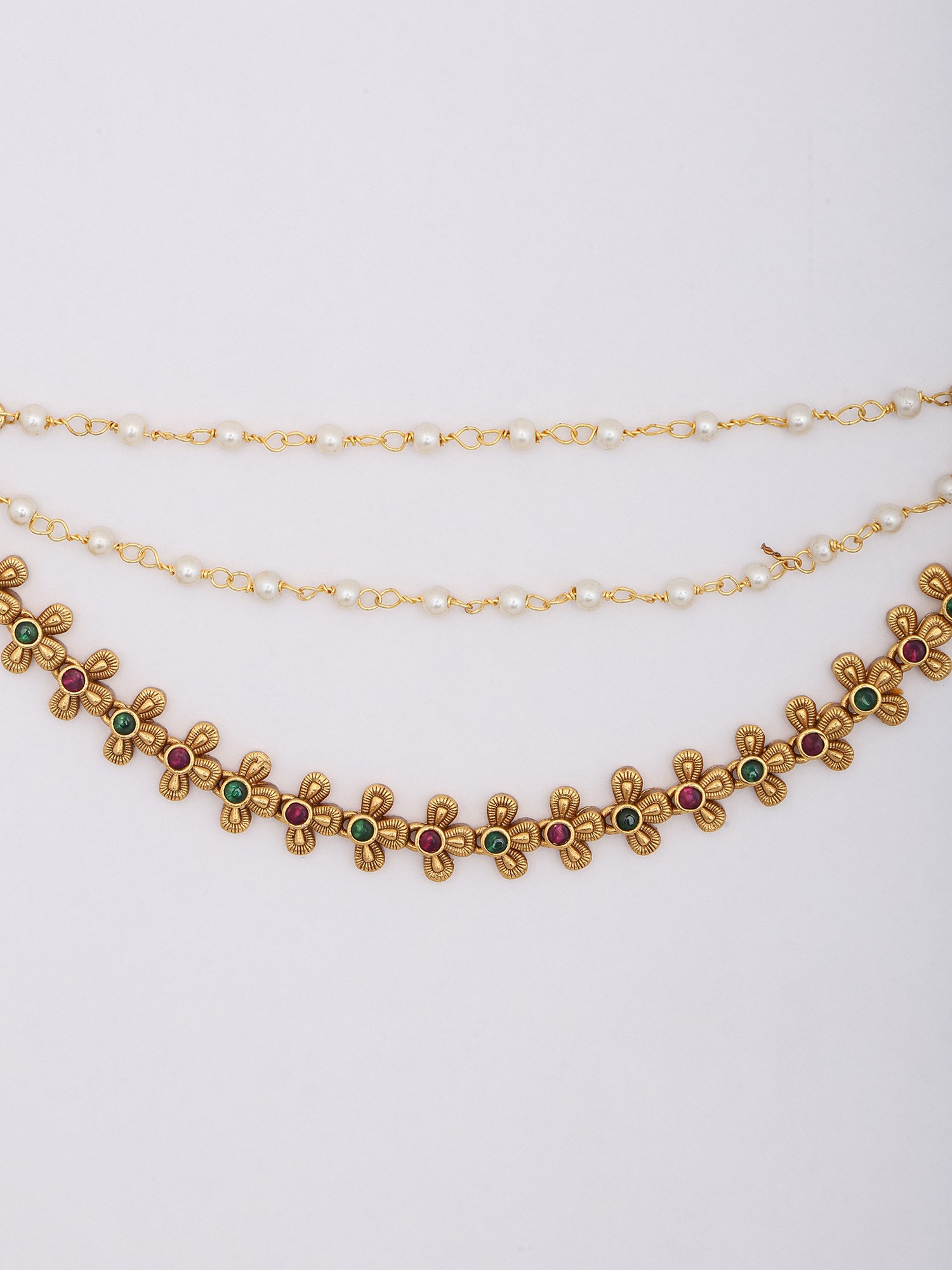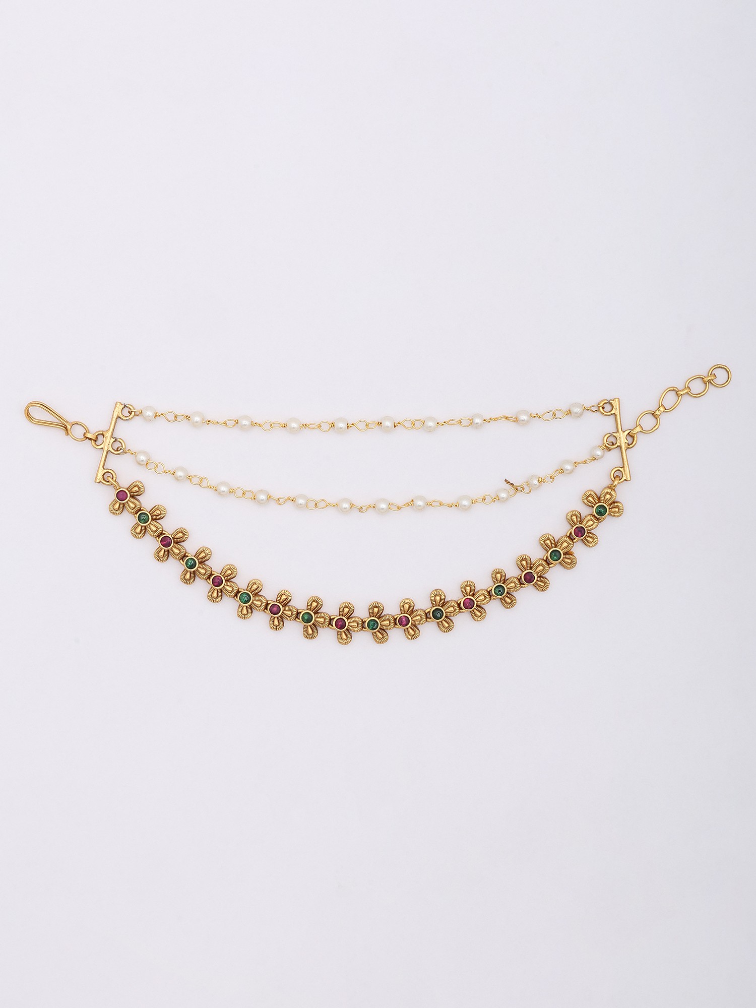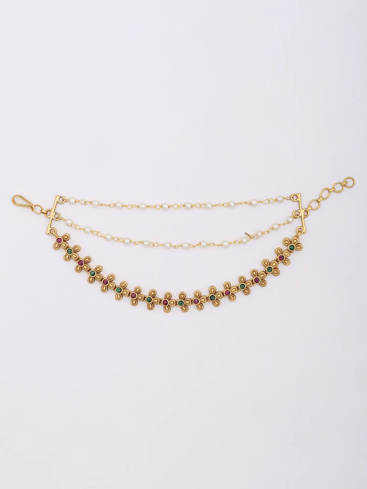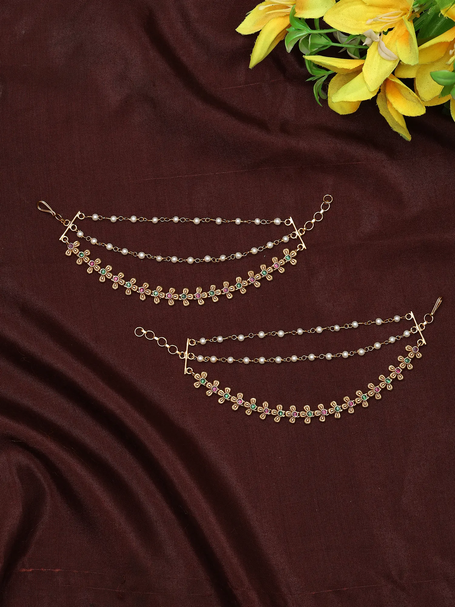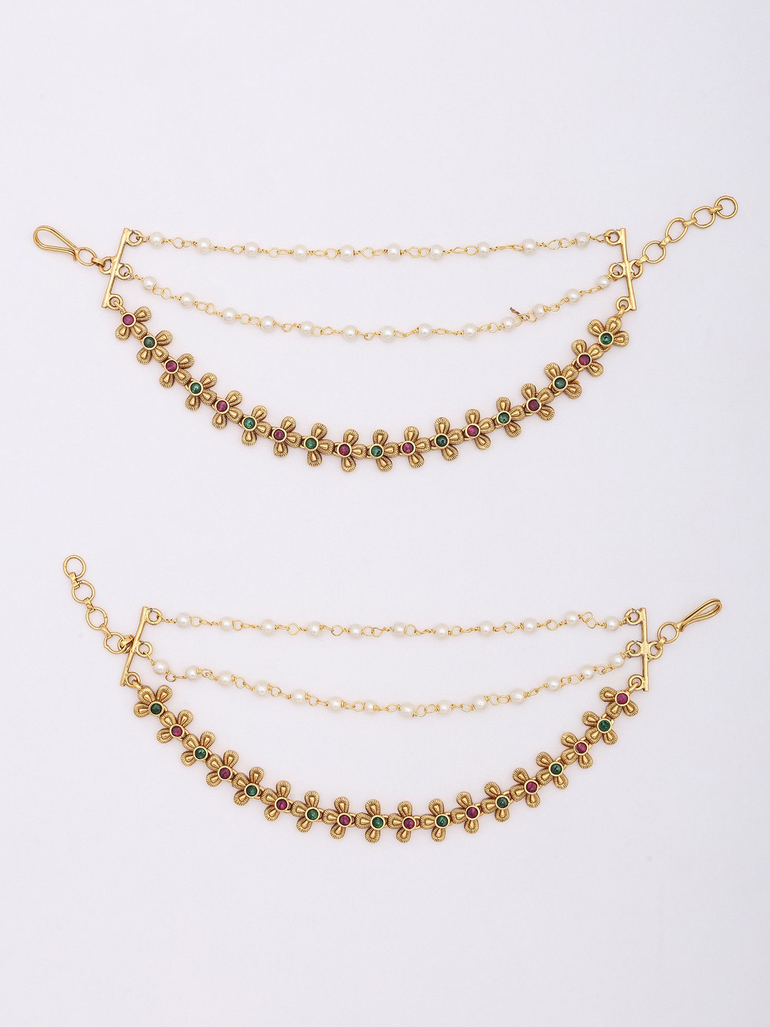 Bridal Floral Mattal (Ear Chain) with Pearl Drops (Pair)