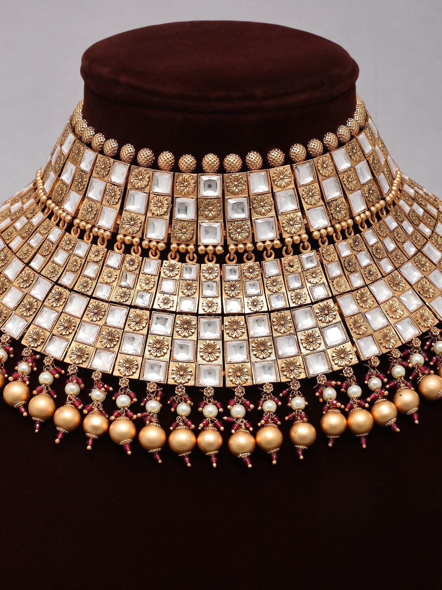 • Intricately crafted Kundan choker necklace designed for bridal elegance.