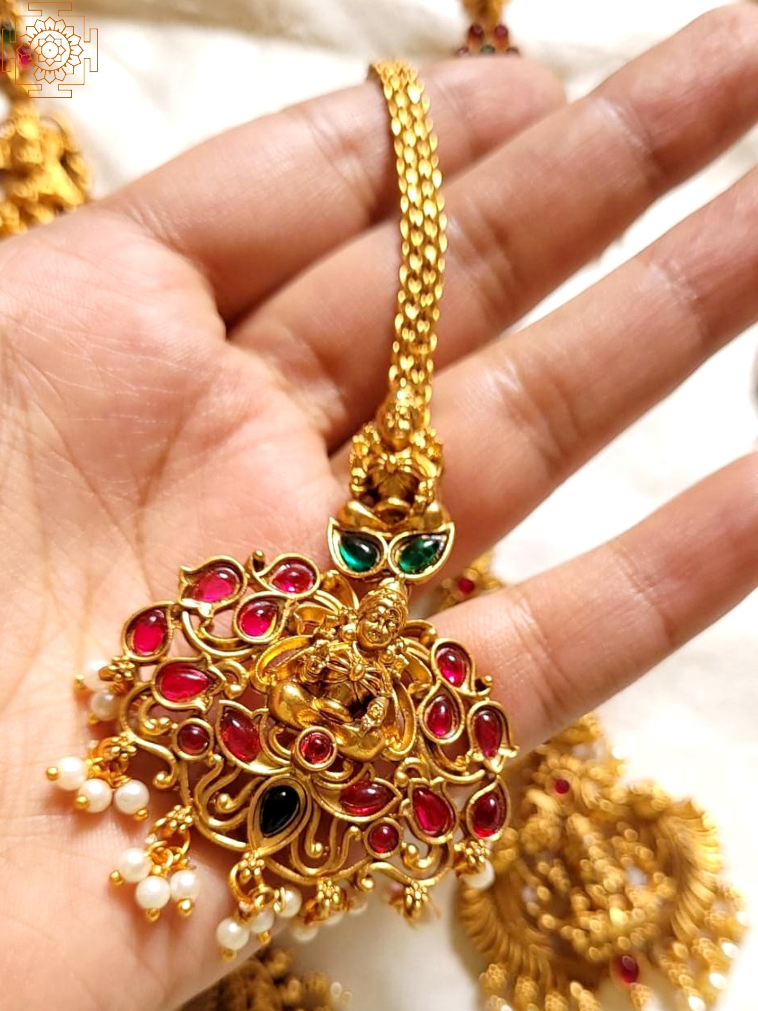 This isn't just jewelry; it’s a reflection of your personal style and appreciation for exquisite craftsmanship. It's a piece that speaks volumes about your taste and appreciation for timeless beauty. Its intricate detailing, rich color palette, and the divine representation of Goddess Lakshmi make it an exceptional addition to your jewelry collection. Prepare to receive compliments as you grace any occasion with the radiant charm of this magnificent Maang Tikka.