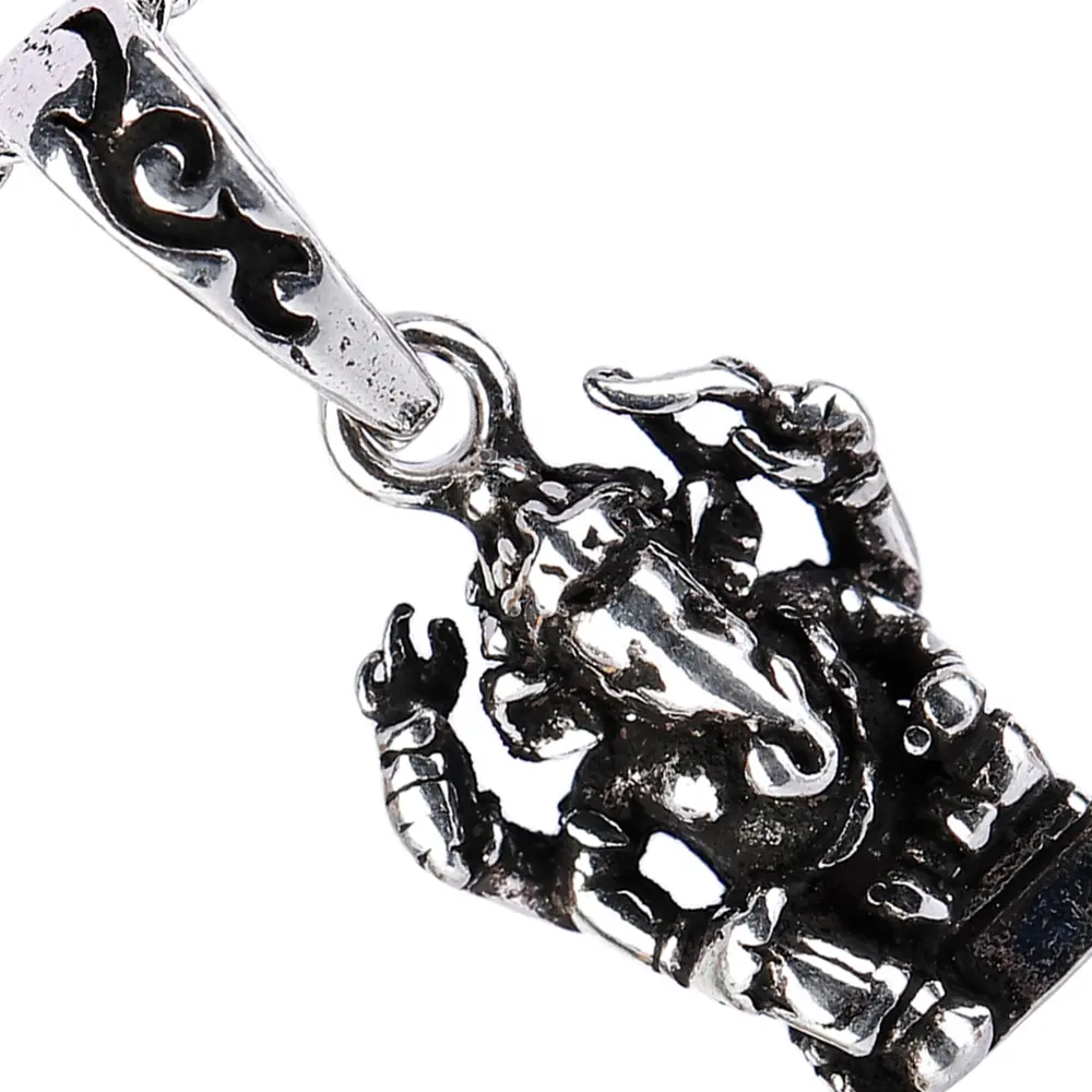 Invite the blessings of Lord Ganesha into your life with this intricately designed pendant. In Hinduism, Ganesha is revered as the remover of obstacles, the deity of wisdom, and the patron of arts and sciences. Wearing this pendant can be a powerful way to connect with these energies and invoke auspicious beginnings in all your endeavors. The details of the pendant have been meticulously crafted to capture the essence of Ganesha's divine form. The depiction of the four arms signifies his immense power and ability to overcome any challenge. Each hand can hold symbolic items representing his different aspects, such as a sweet symbolizing the reward for spiritual seeking.