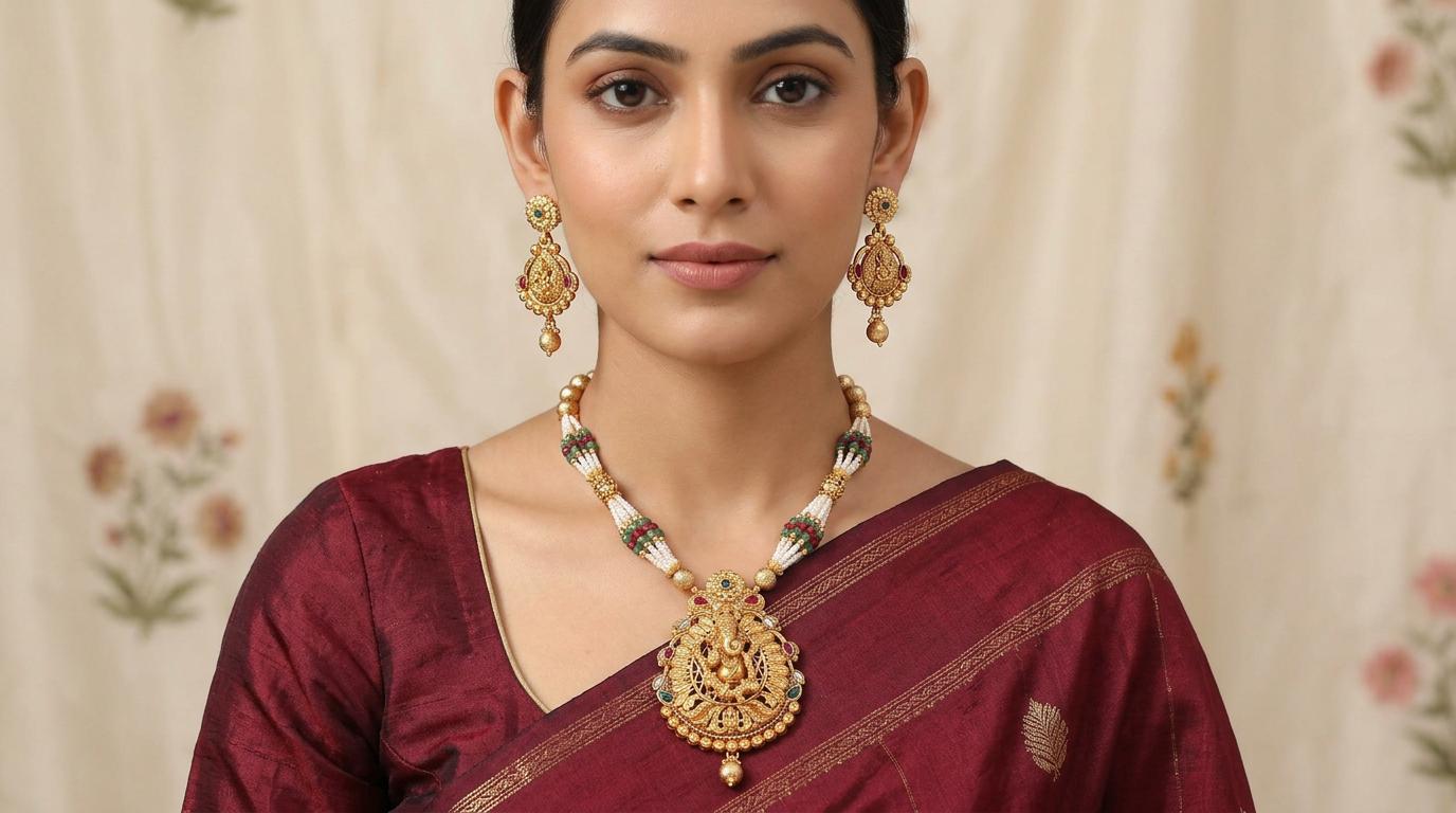 Temple-Style Lord Ganesha Traditional Necklace and Earrings Set