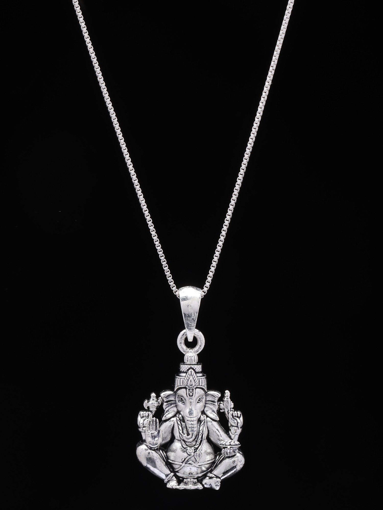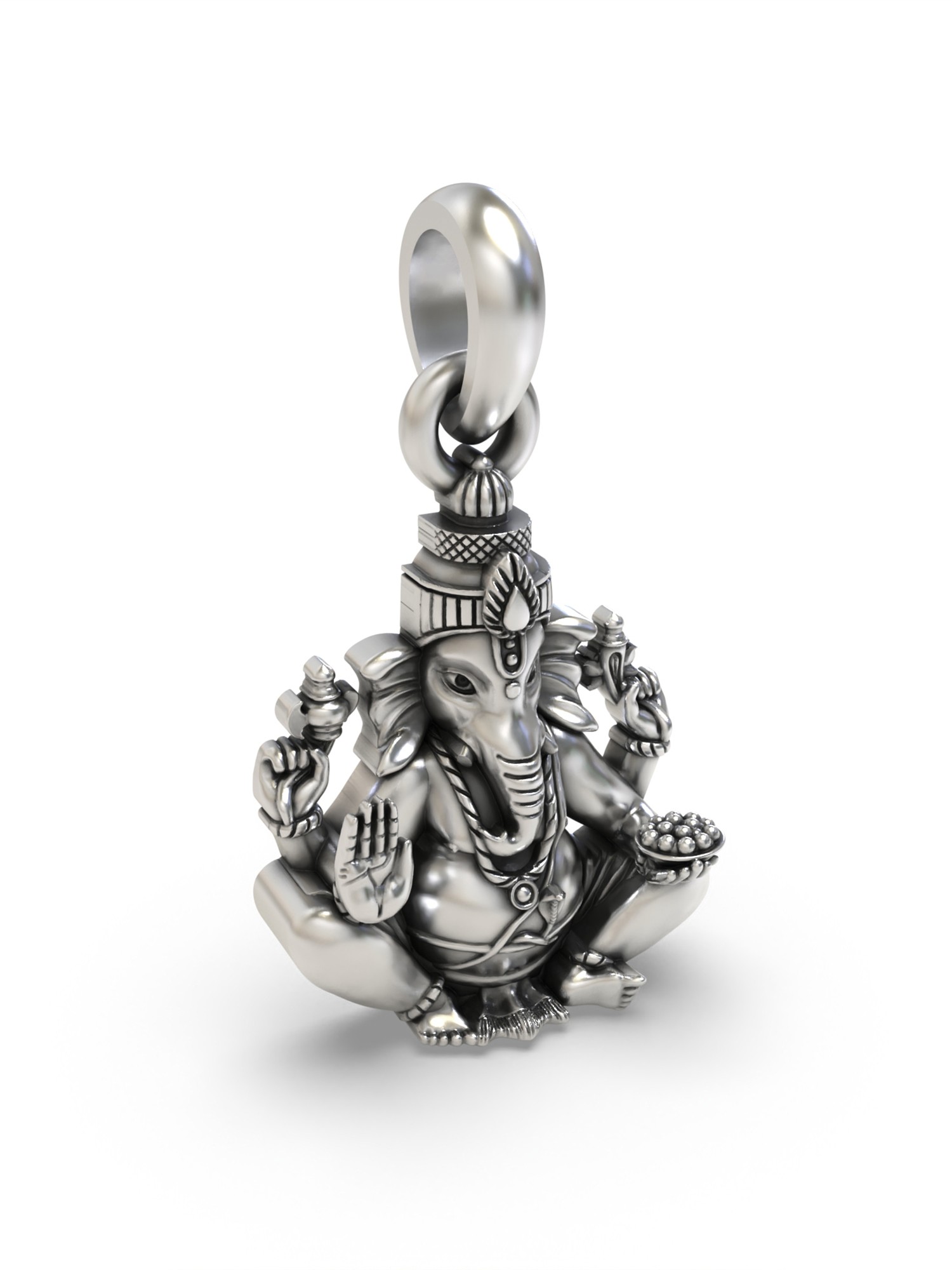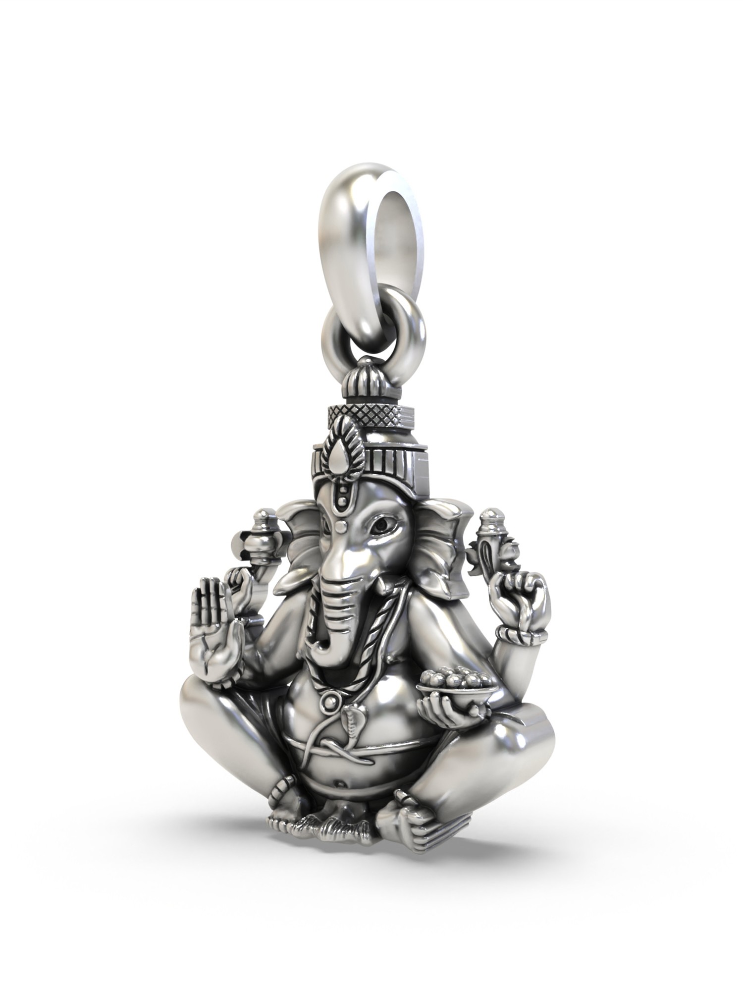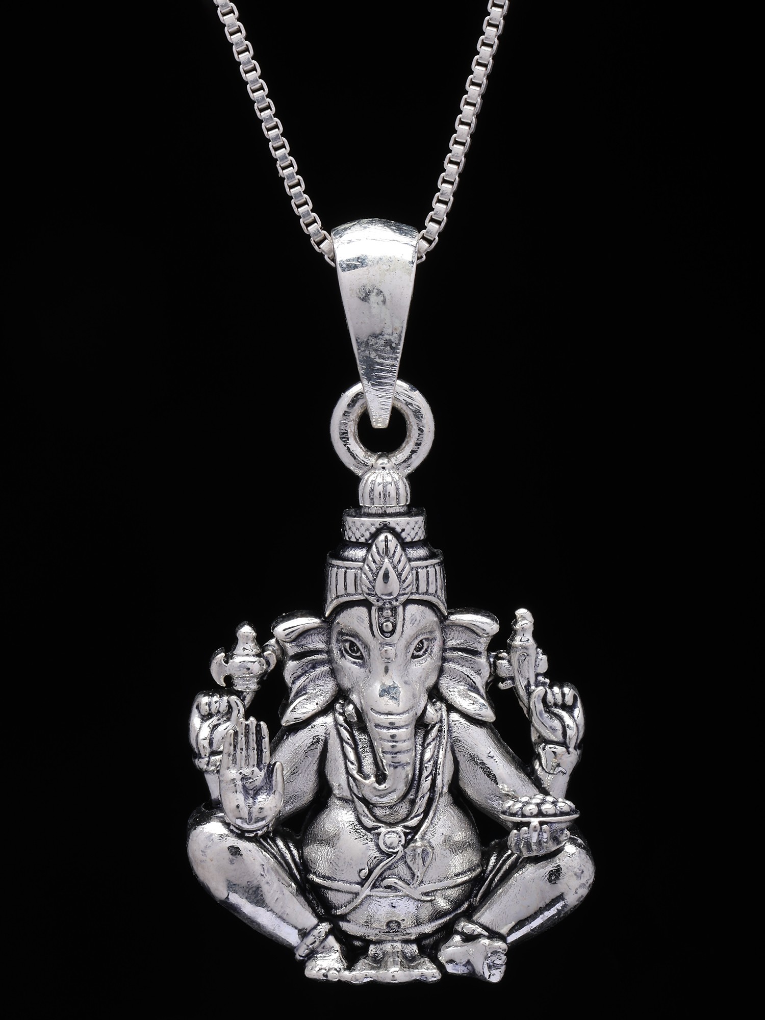 Embrace the divine energy and wisdom embodied in this exquisitely crafted pendant. A representation of the beloved Hindu deity, this piece is more than just an accessory; it's a symbol of prosperity, new beginnings, and the remover of obstacles. Wear it as a reminder of your own inner strength and resilience, and as a tangible connection to the powerful blessings of Lord Ganesha. The pendant portrays Ganesha in a seated posture, radiating serenity and peace. Every detail, from his serene facial expression to the implements held in his hands, is meticulously rendered. The design captures the essence of Ganesha's benevolent nature, making it a truly meaningful piece of jewelry.