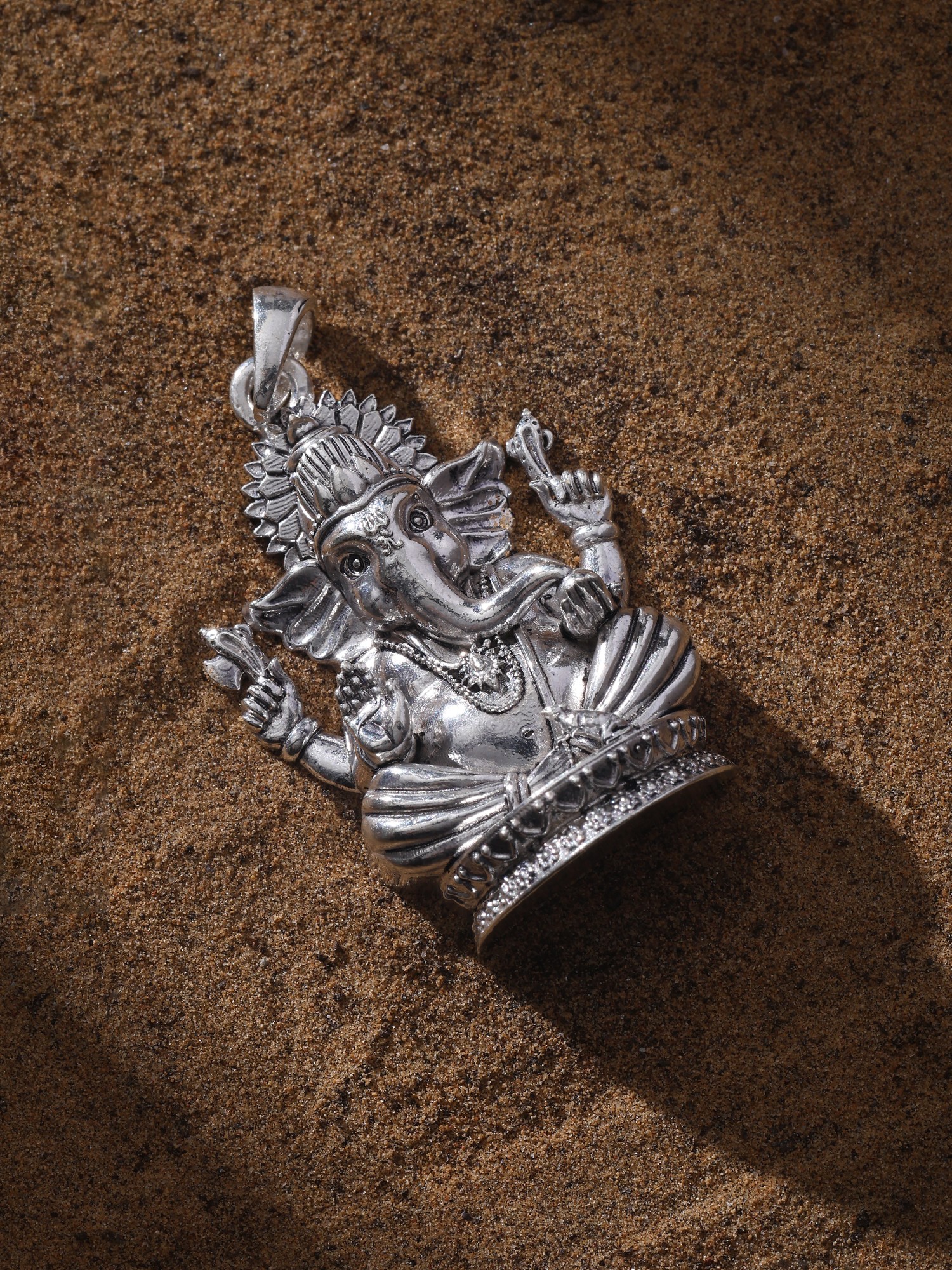 Sterling Silver Chaturbhuja Lord Ganesha Pendant
