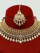 Beaded And Stone Studded Attractive Choker Necklace With Matching Earrings And Mangtika