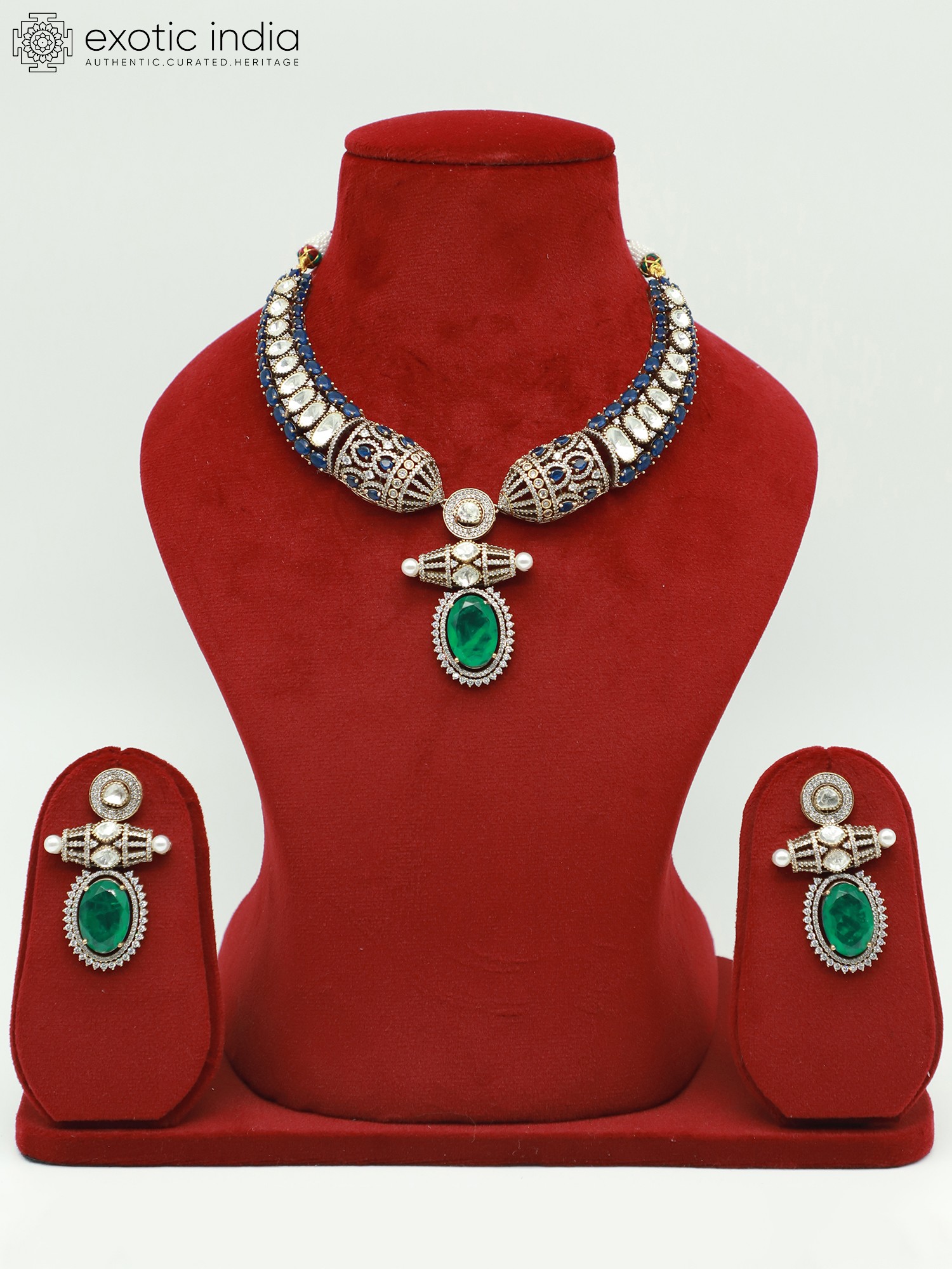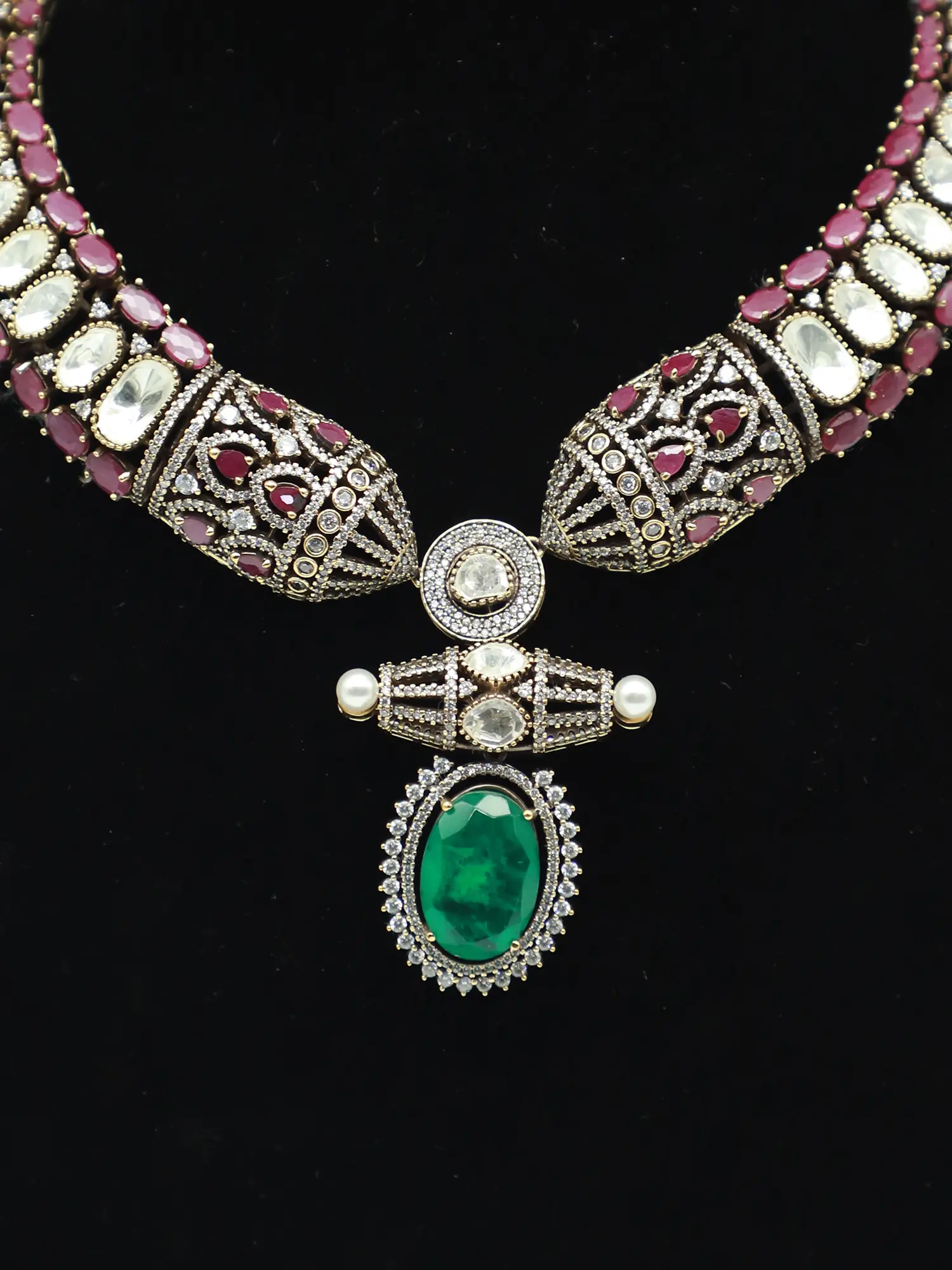 Padmavati Multi Stone Studded Choker Necklace Set | with Earrings