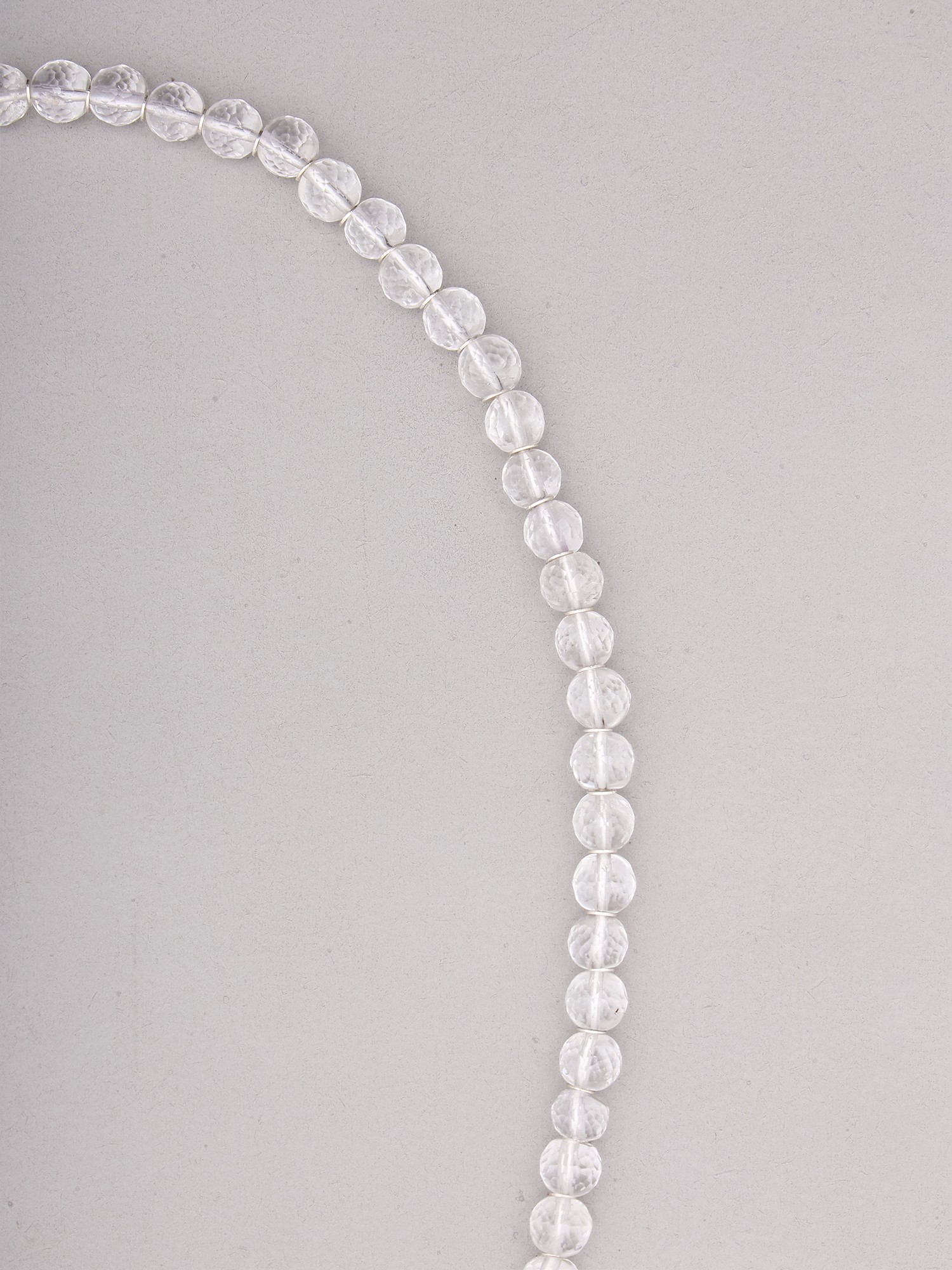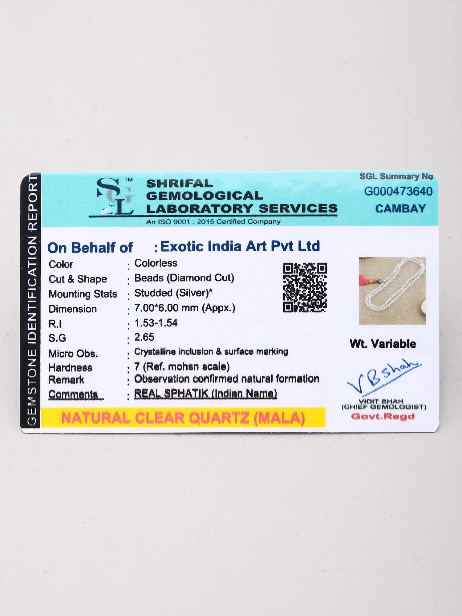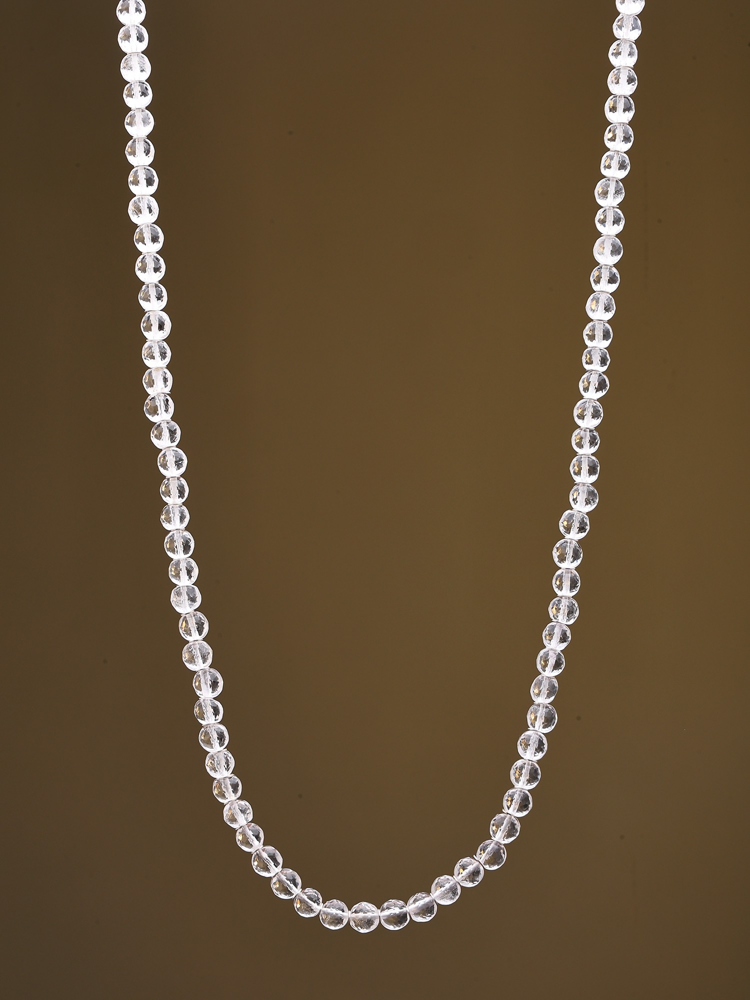 Imbued with the pure energy of clear quartz, this exquisite Japa Mala necklace offers a touch of serene elegance to your everyday wear. Each bead is a miniature marvel, meticulously faceted to capture and refract light, creating a gentle, captivating shimmer with every movement. The clear quartz, often referred to as the "master healer," is believed to amplify energy and thought, as well as the effect of other crystals. Its translucent beauty evokes a sense of clarity, purity, and spiritual connection, making it a powerful companion for meditation, mindfulness, or simply as a beautiful accent to your personal style.
