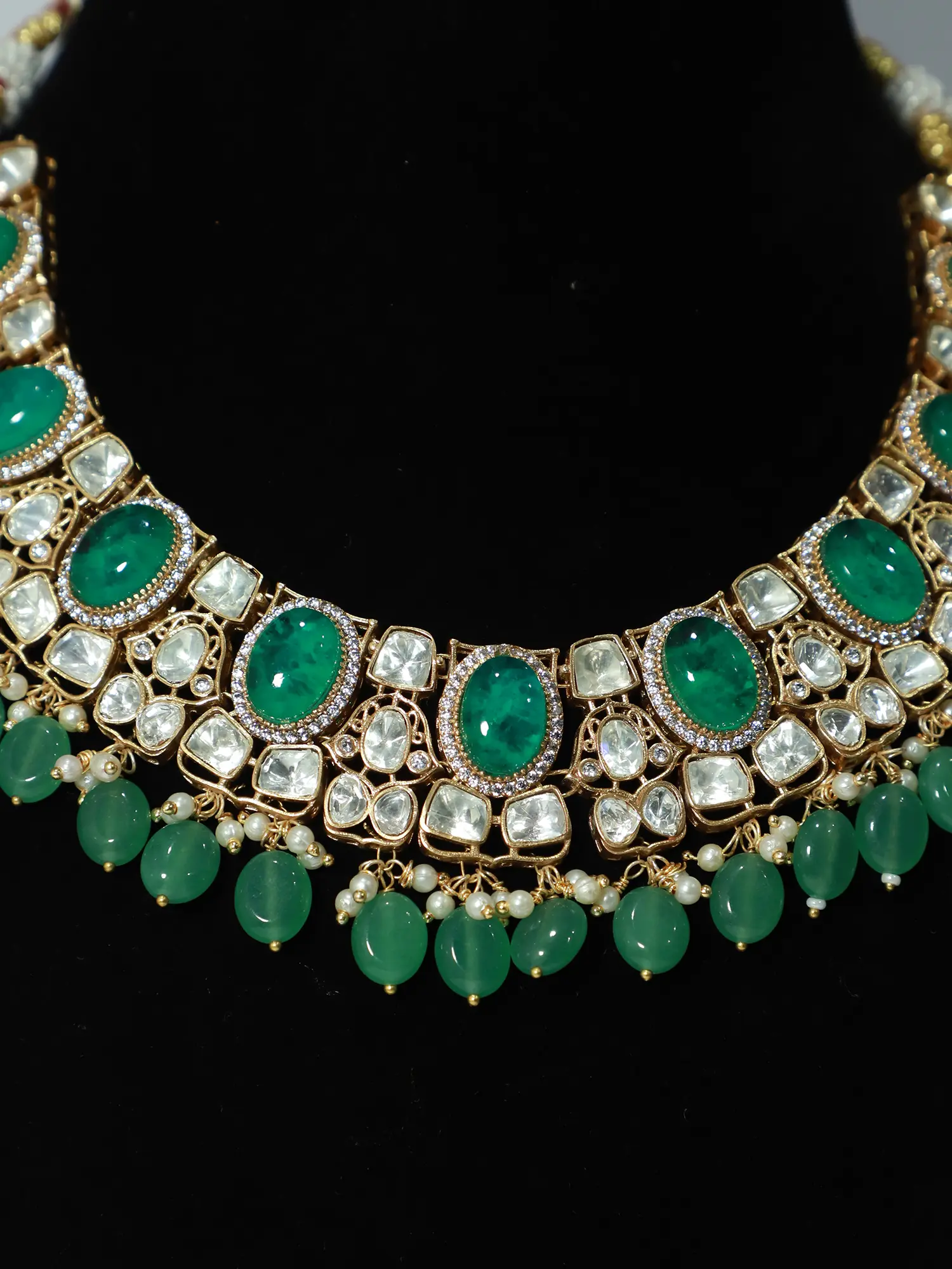 A Symphony of Emerald and Gold: An Exquisite Kundan Necklace Set