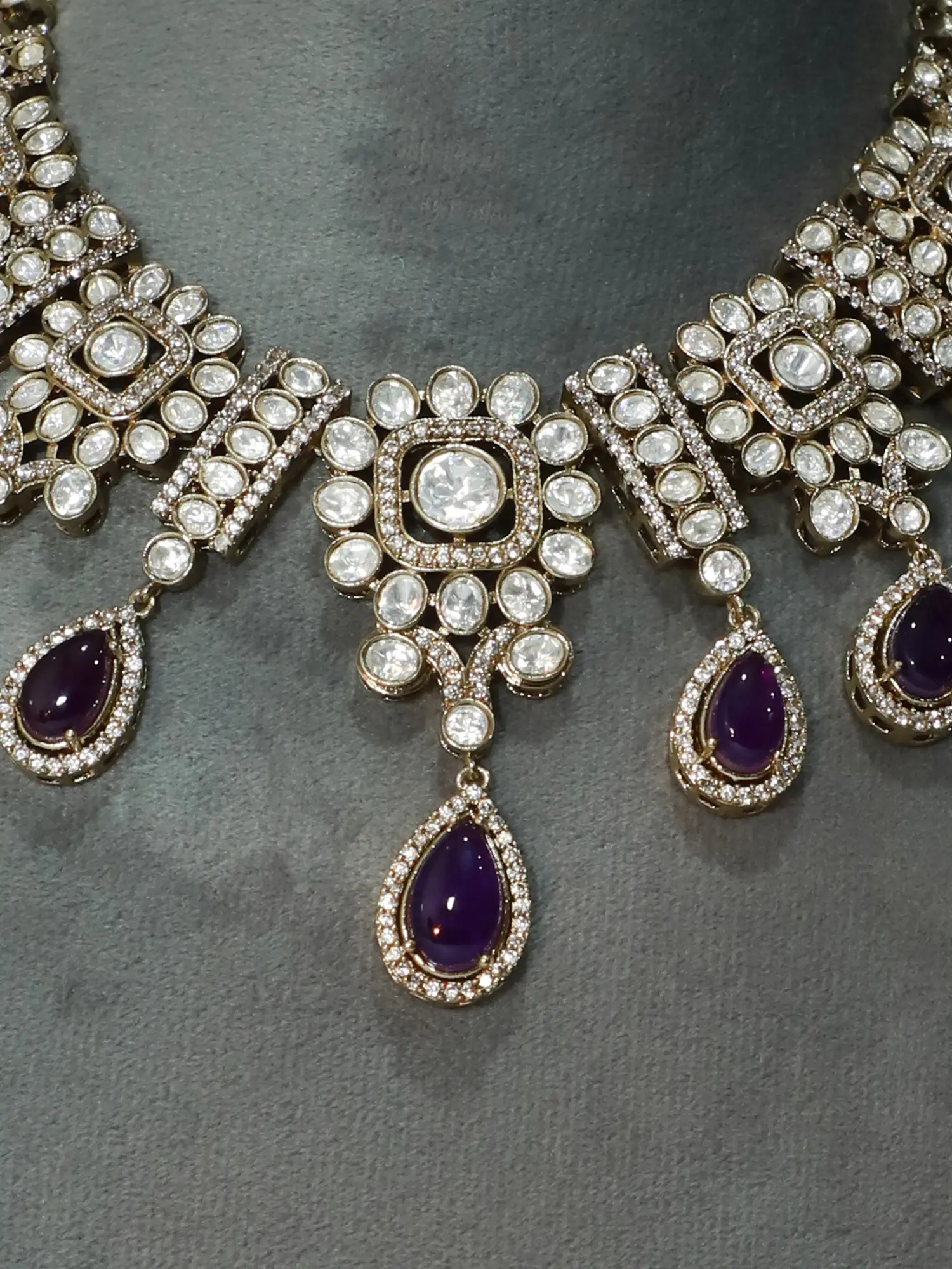 Stone Studded Polki Copper And Kundan Necklace Set With Earrings