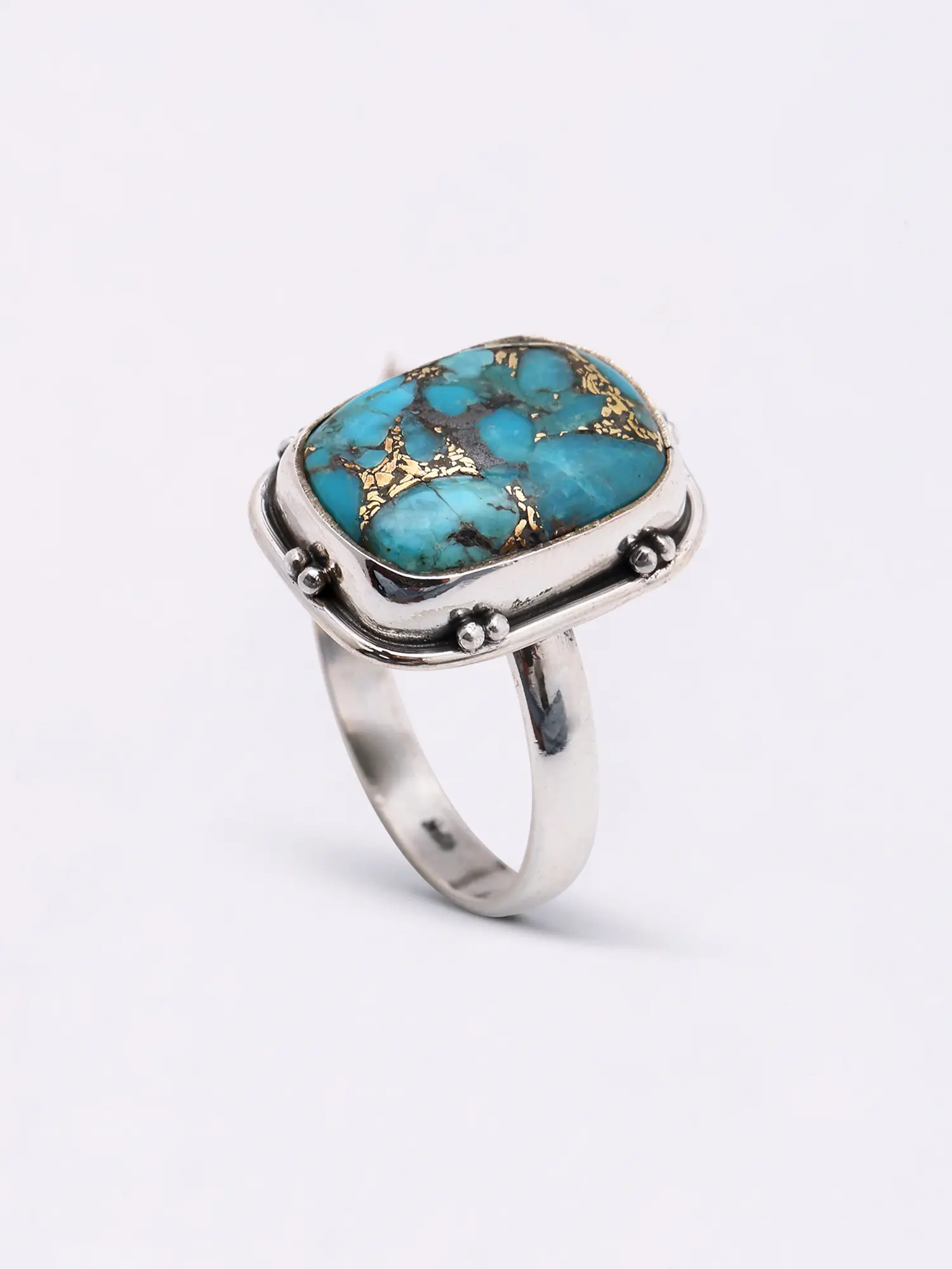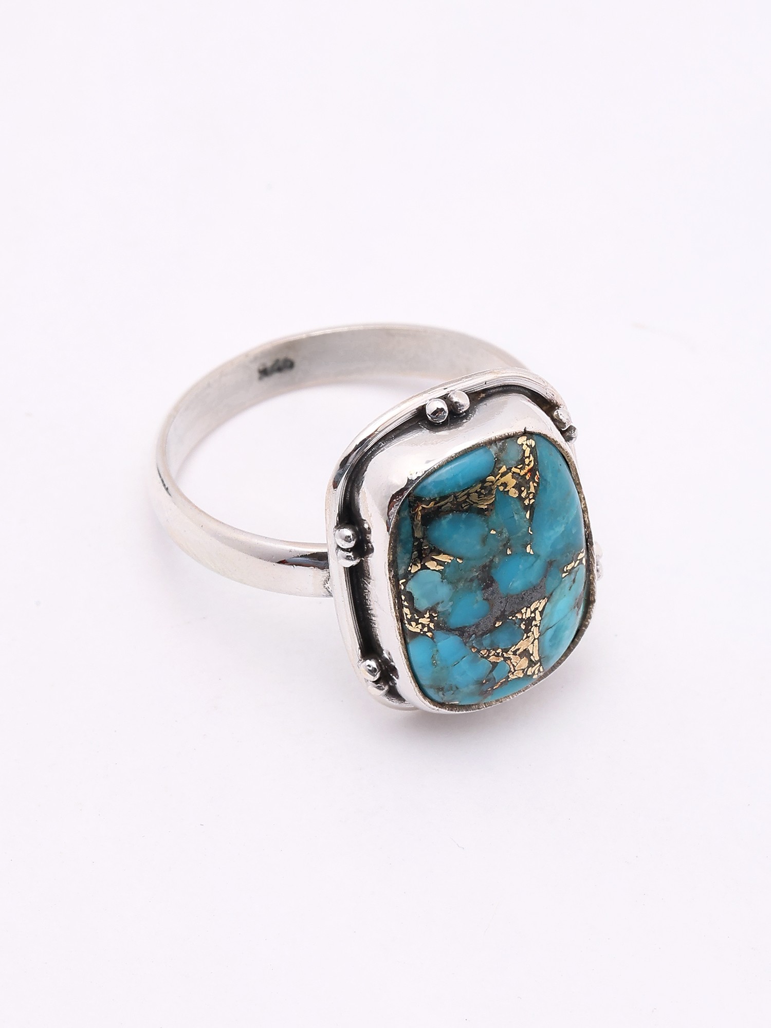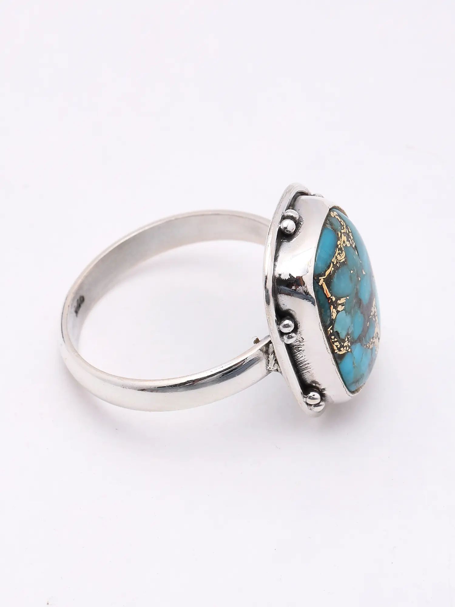 Chic Sterling Silver Ring with Reconstituted Turquoise Stone