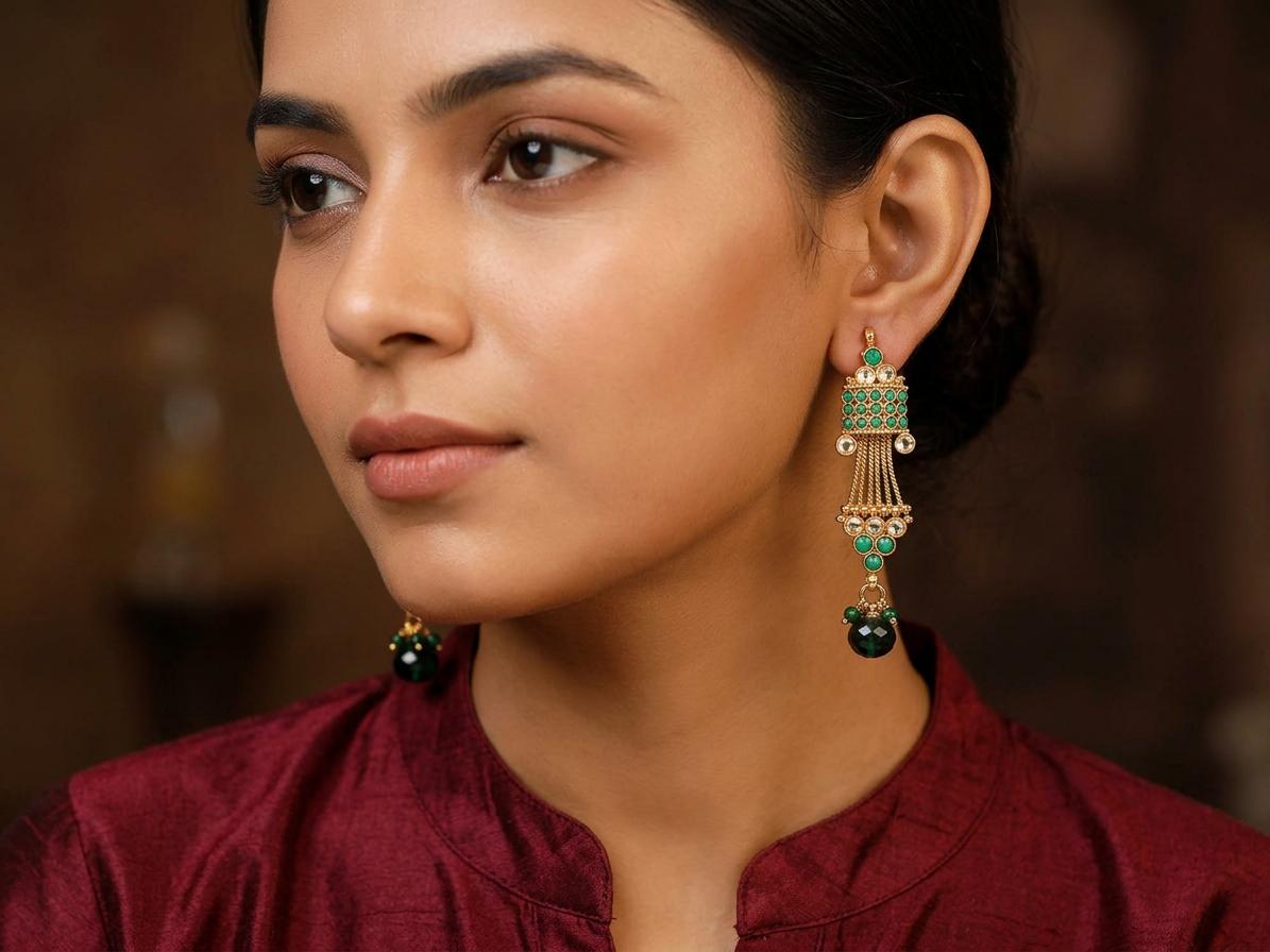Designer dangling earrings will add an antique look to your outfit. These earrings give your appearance a touch of refinement with their exquisite craftsmanship and original patterns that sway with grace. Accept the imaginative design and meticulous craftsmanship of these earrings, enabling them to become a focal point of your look and a reflection of your unique sense of style.