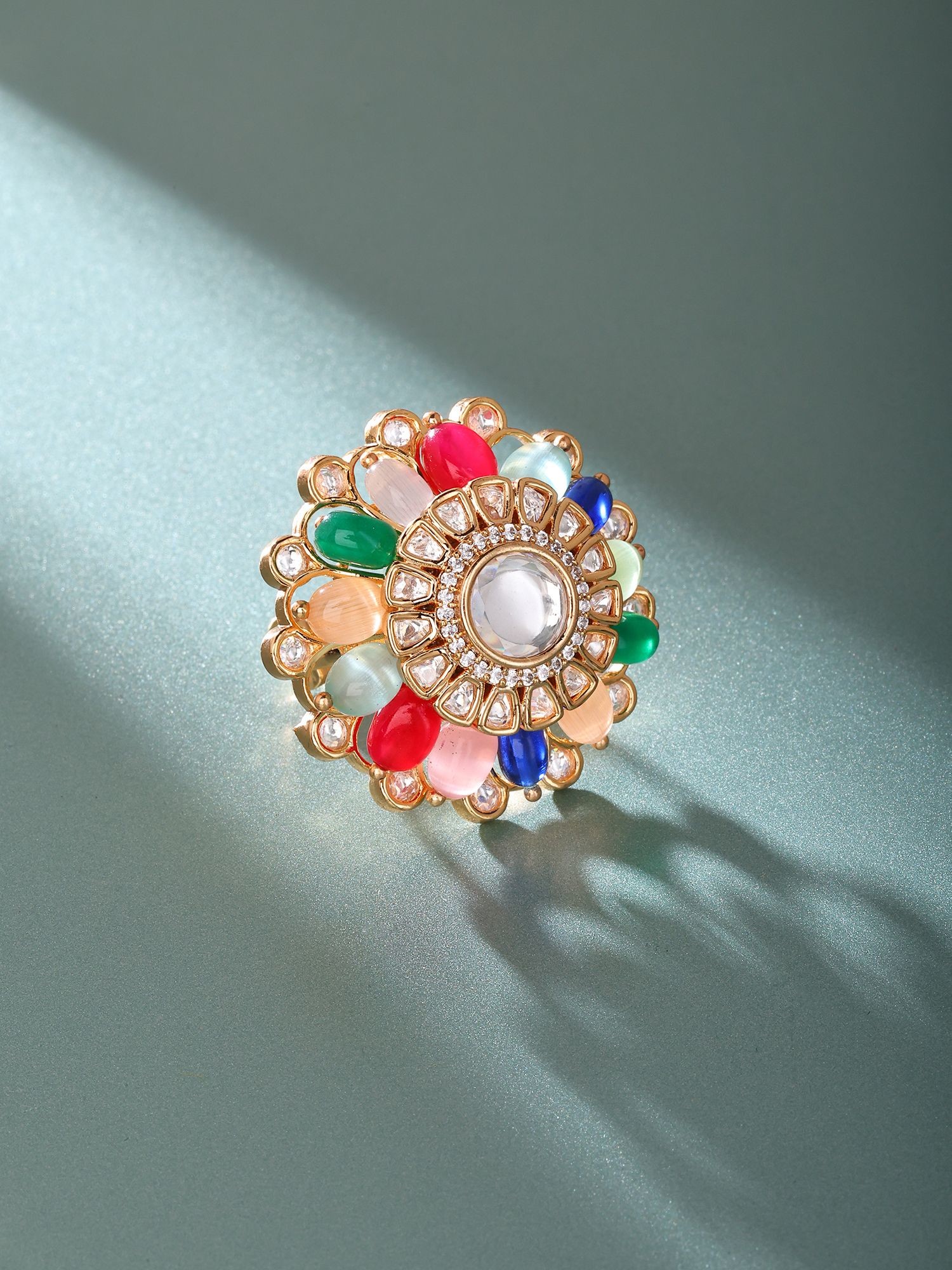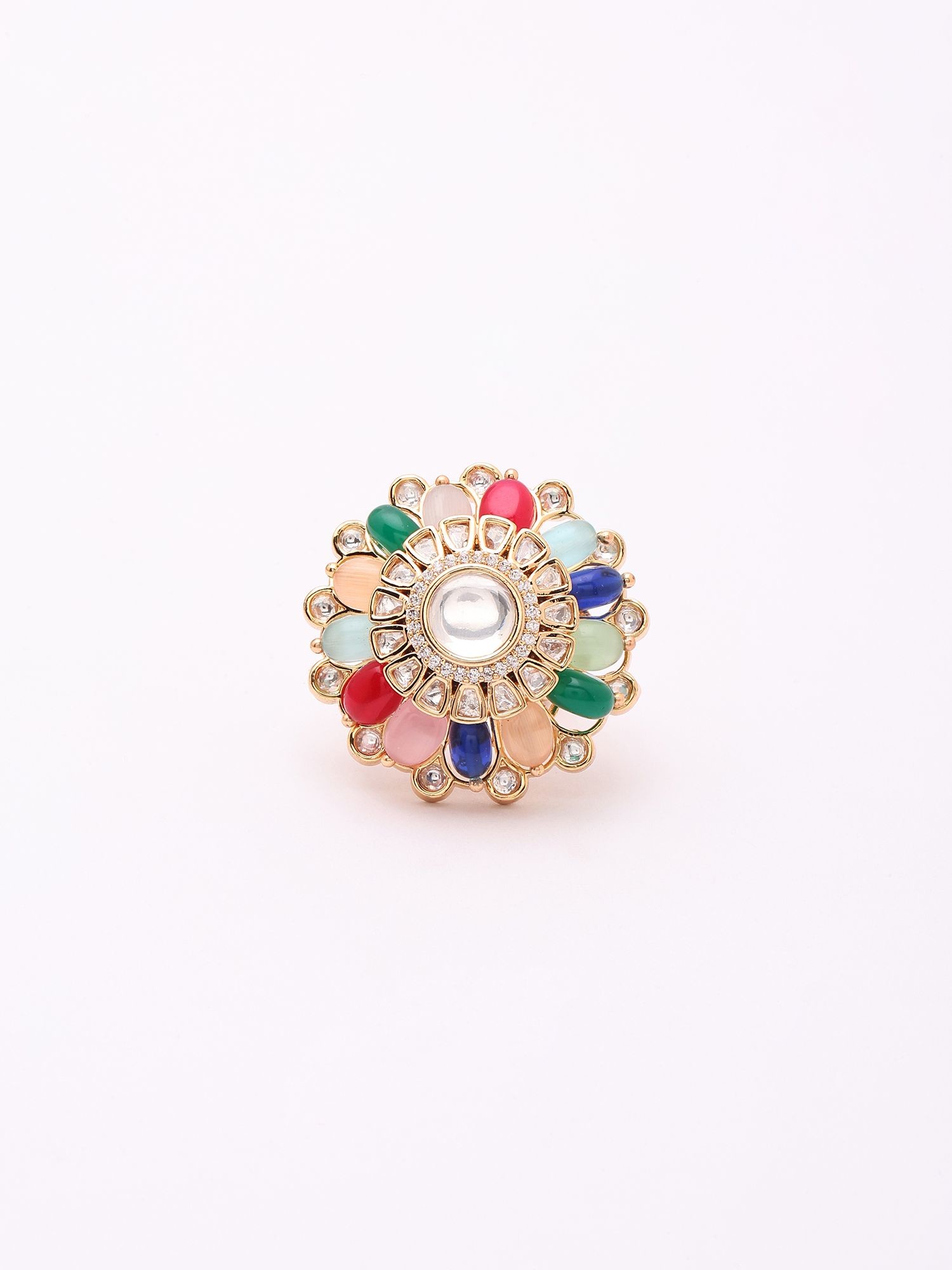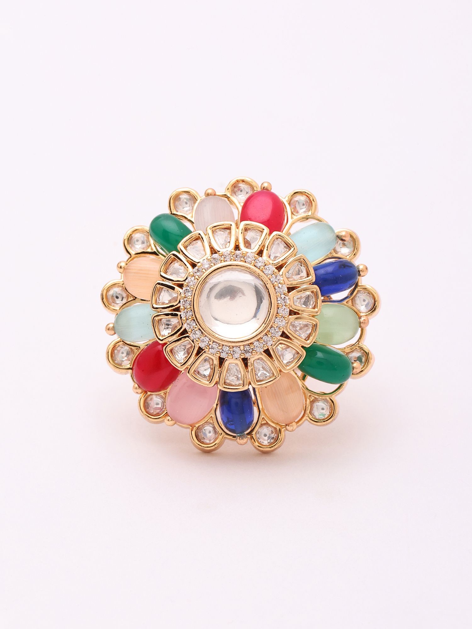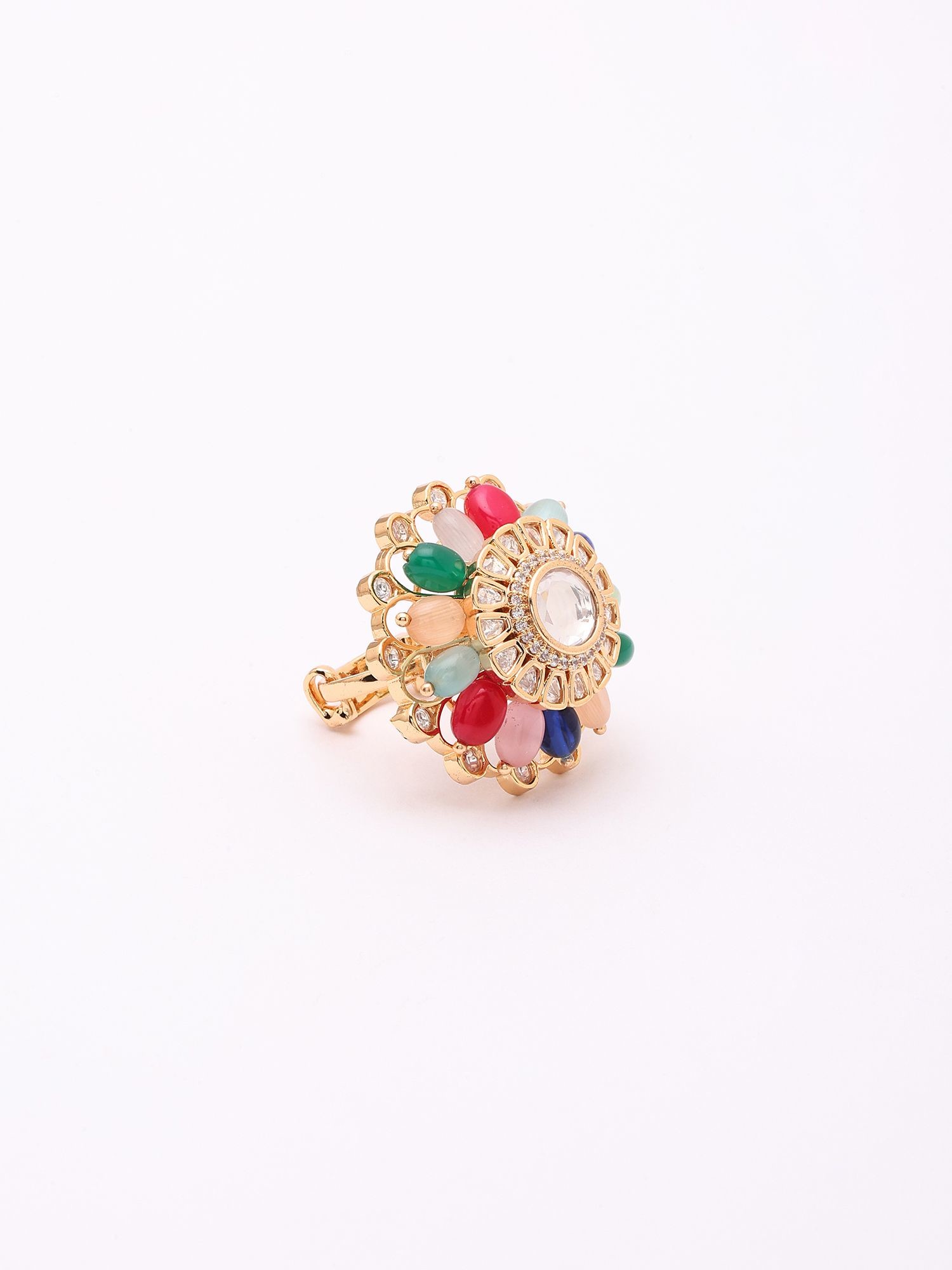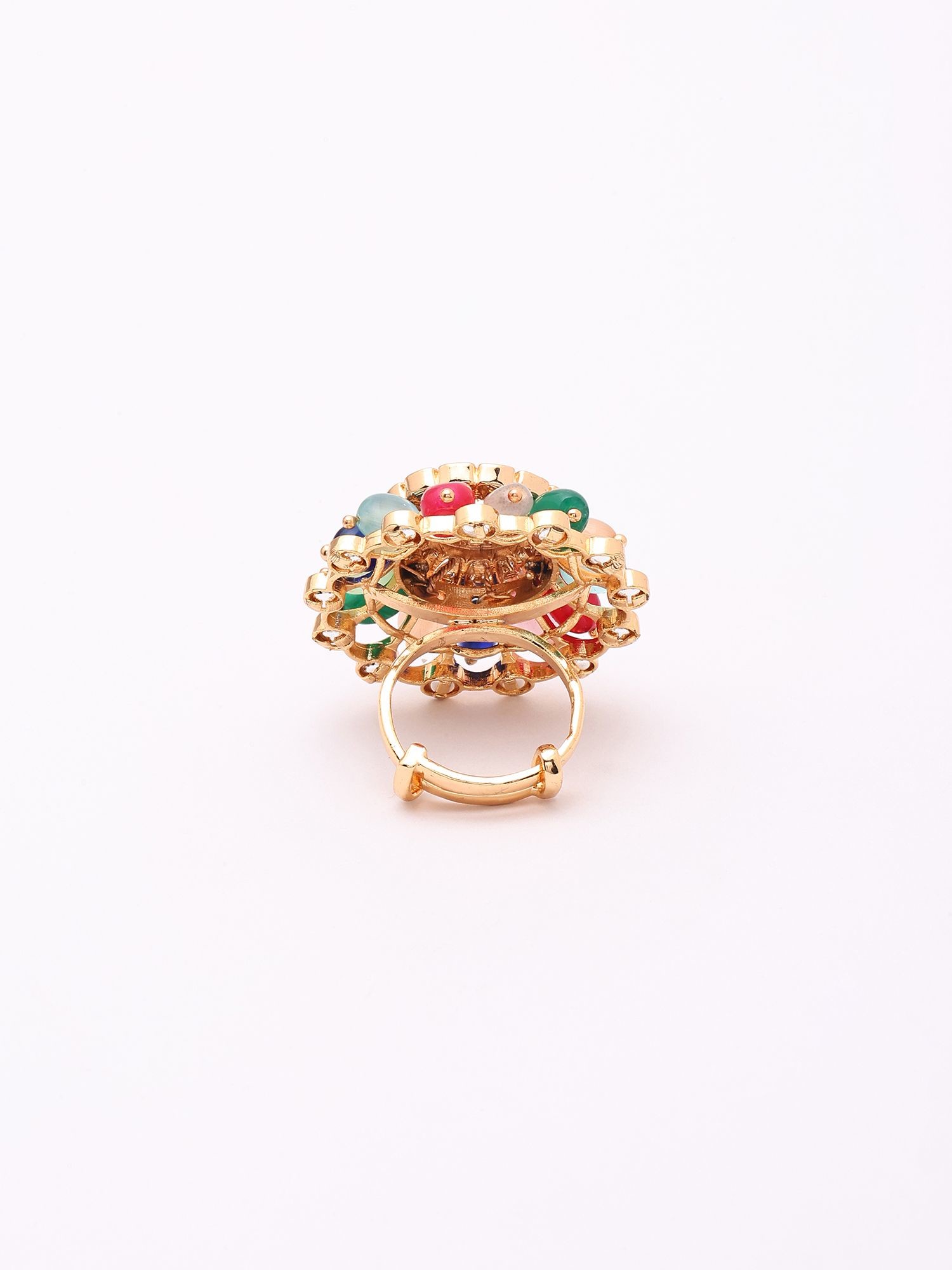 Designer Adjustable Cocktail Ring with Kundan Embellishments