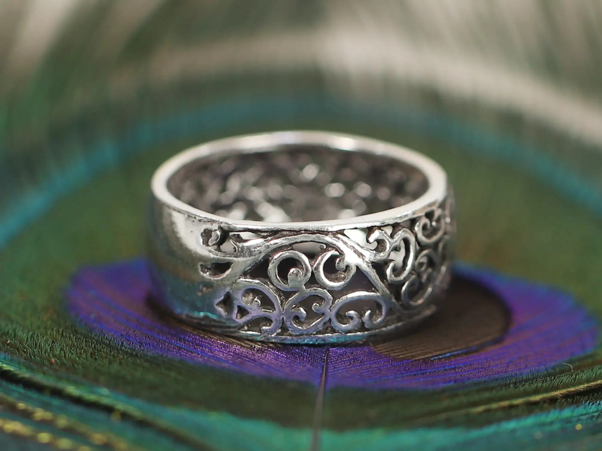 This sterling silver masterwork, the Designer Hollow Ring, elevates jewelry to the level of wearable art. It is painstakingly crafted, resulting in an airy and powerful dance of gaps and negative space. The coiled vines are competing for attention with the vacant area. The use of sterling silver becomes the high point of this jewelry, and it gives it a beautiful silver matt finish that evokes the glory of the Victorian era. Putting this designer ring on your finger will allow the bearer to shine like an epitome of fashion.
