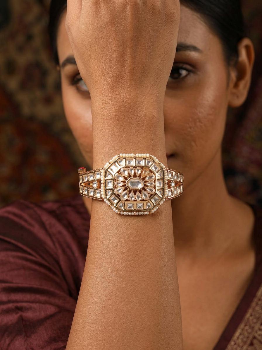 Geometric Triangle Design Kundan Stone Studded Bracelet