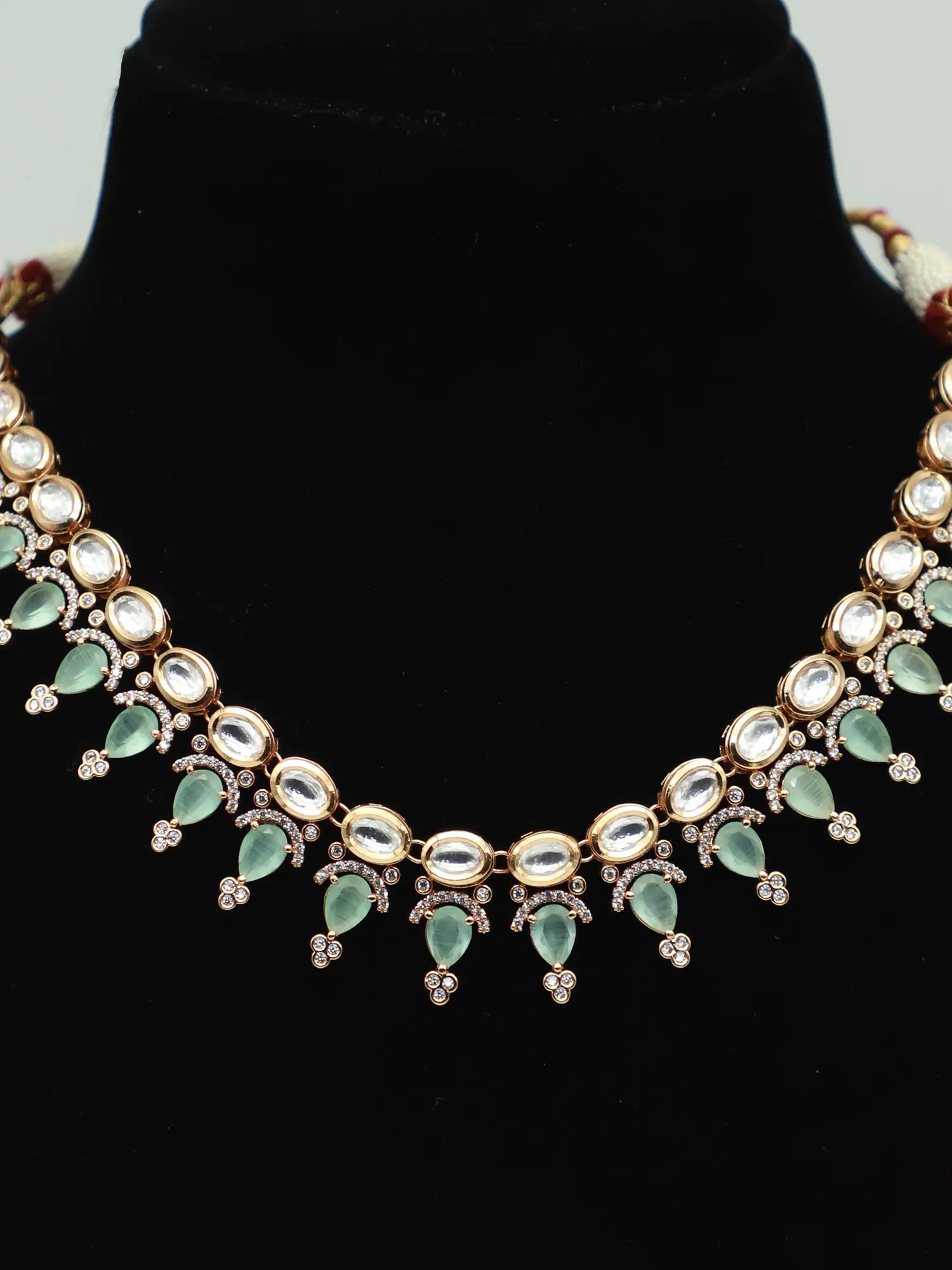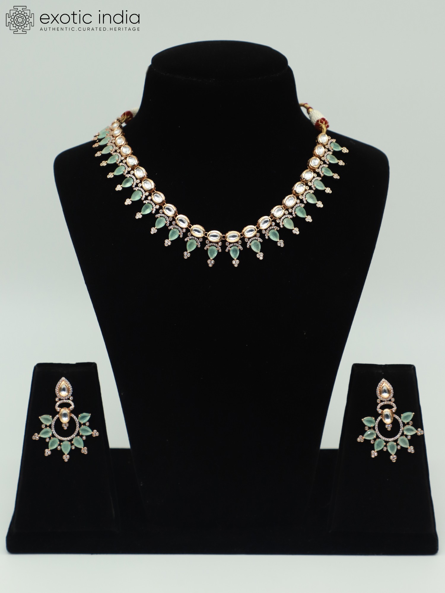 Designer Necklace & Earrings Set with Moissanite and Kundan