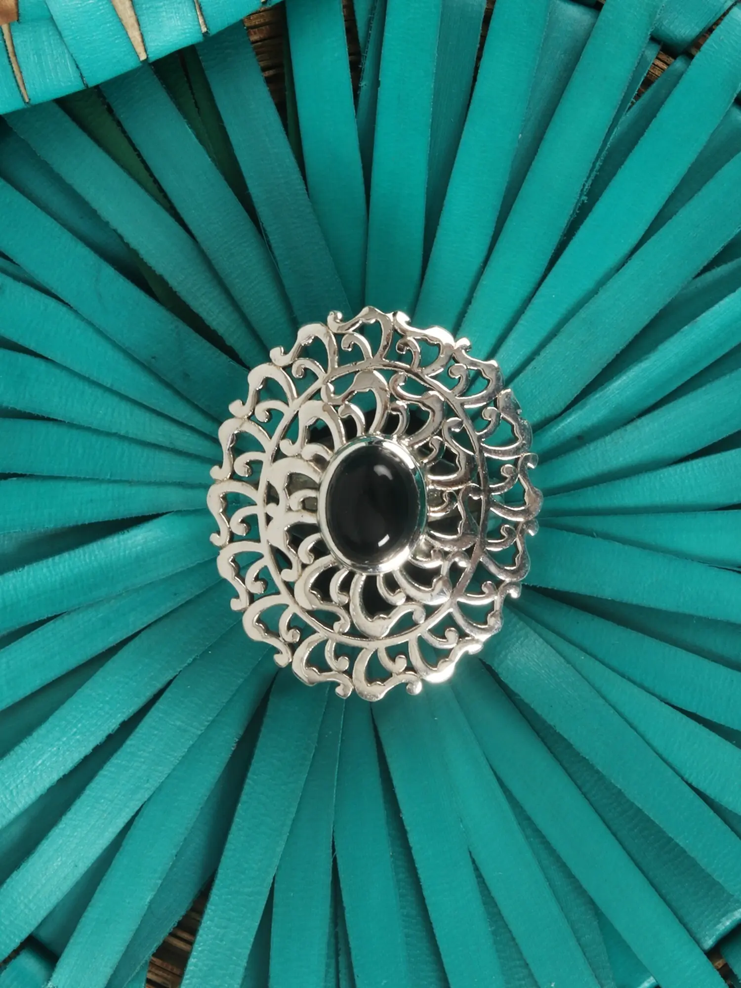 This Oval Stone Sterling Silver Ring is an exquisite fusion of artistry and elegance. At its heart lies a mesmerizing blue stone, exuding a tranquil allure. The sterling silver setting is adorned with lines that elegantly emerge like sunrays, encircling the stone with a celestial grace. This thoughtful design creates a harmonious blend of nature-inspired aesthetics and contemporary style. This bright jewelry is a testament to the age-old traditions of Shringar and allows the beholder to delve into the boundless options of jewelry.