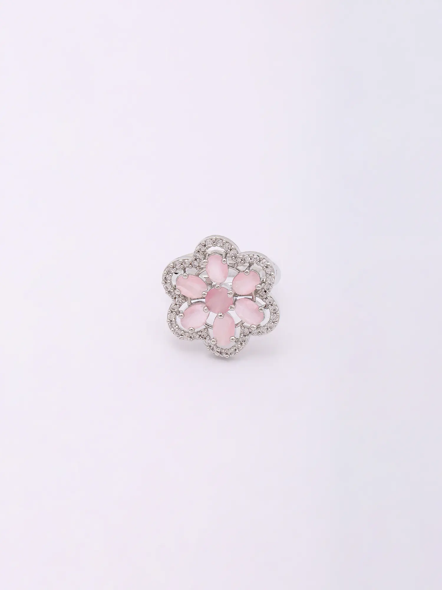 Pink Stone Studded Adjustable American-Diamond Statement Ring