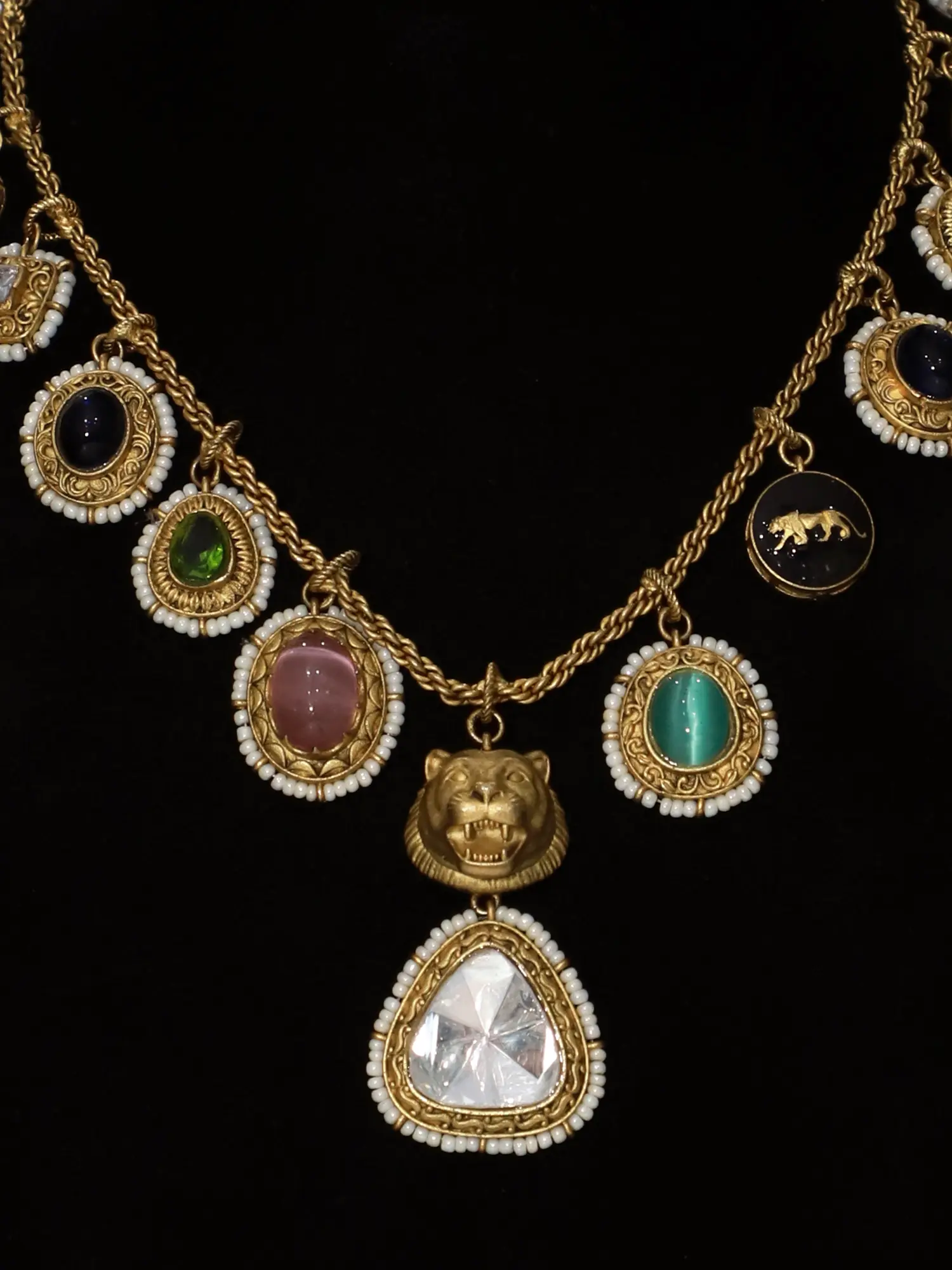 Multicolor Stone Studded Designer Necklace and Earrings Set