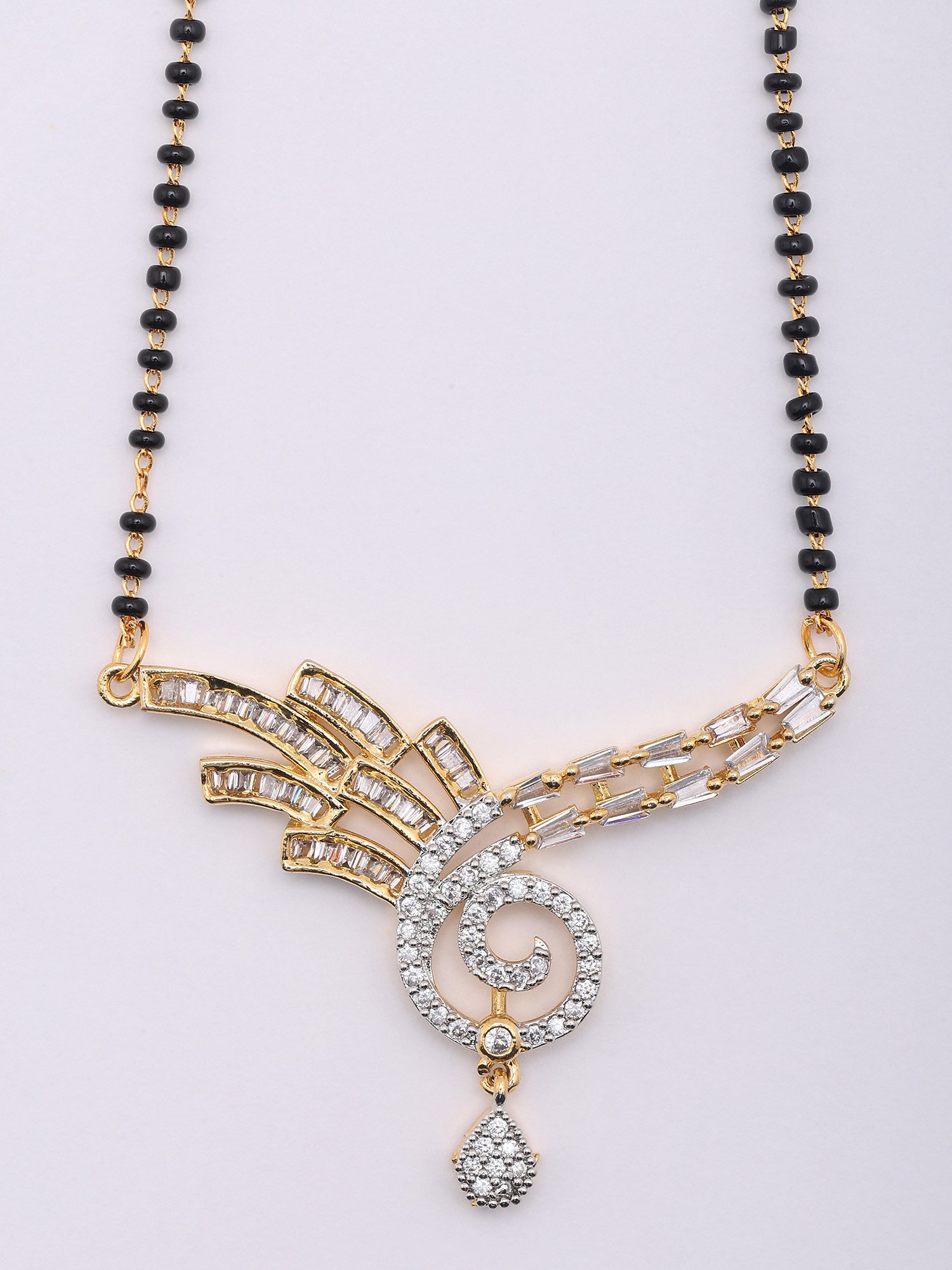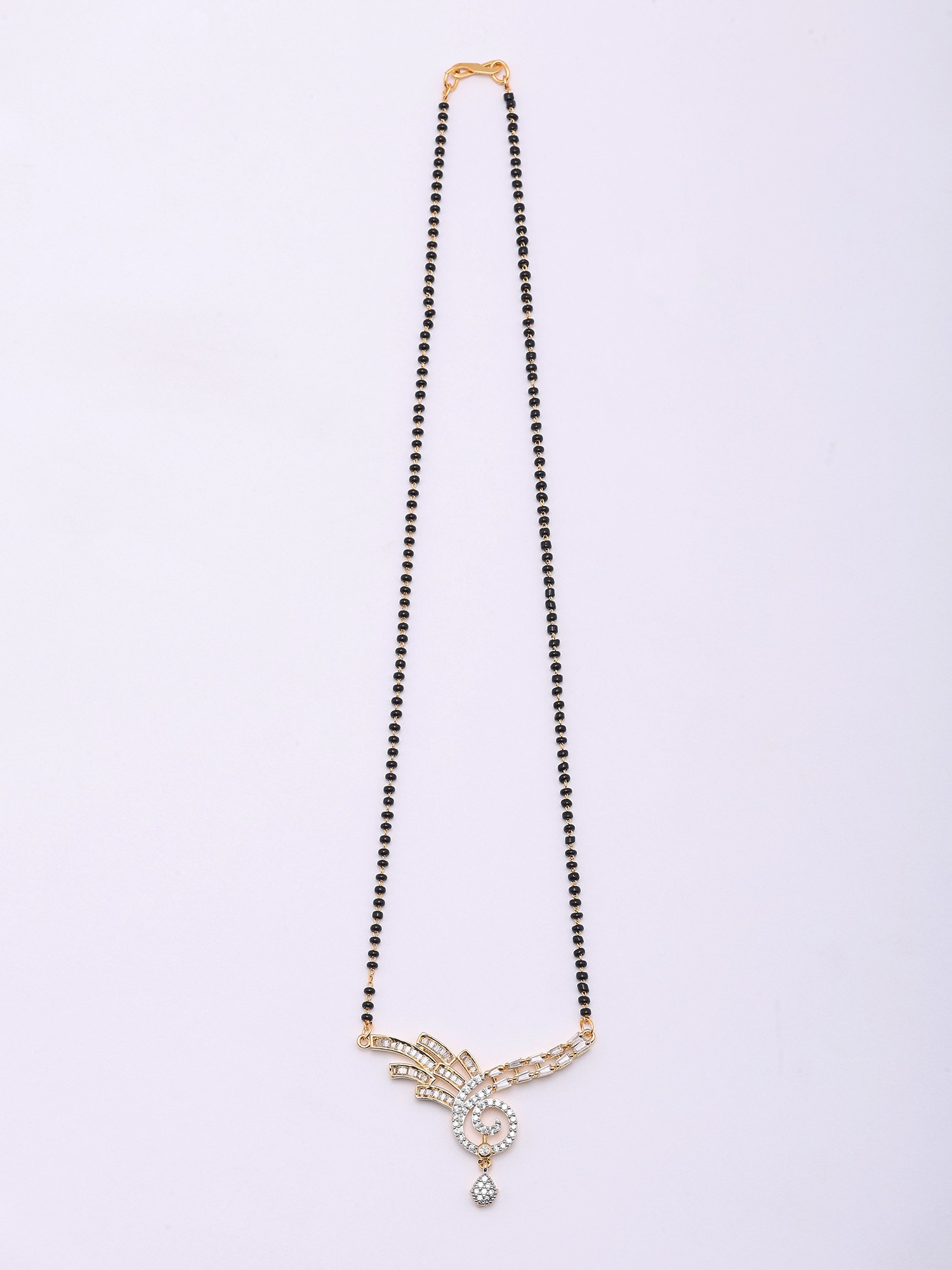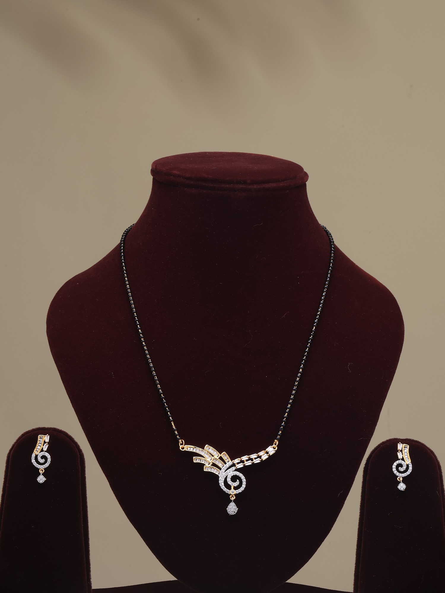 Double Strand Stone Studded Mangalsutra and Earrings Set
