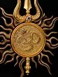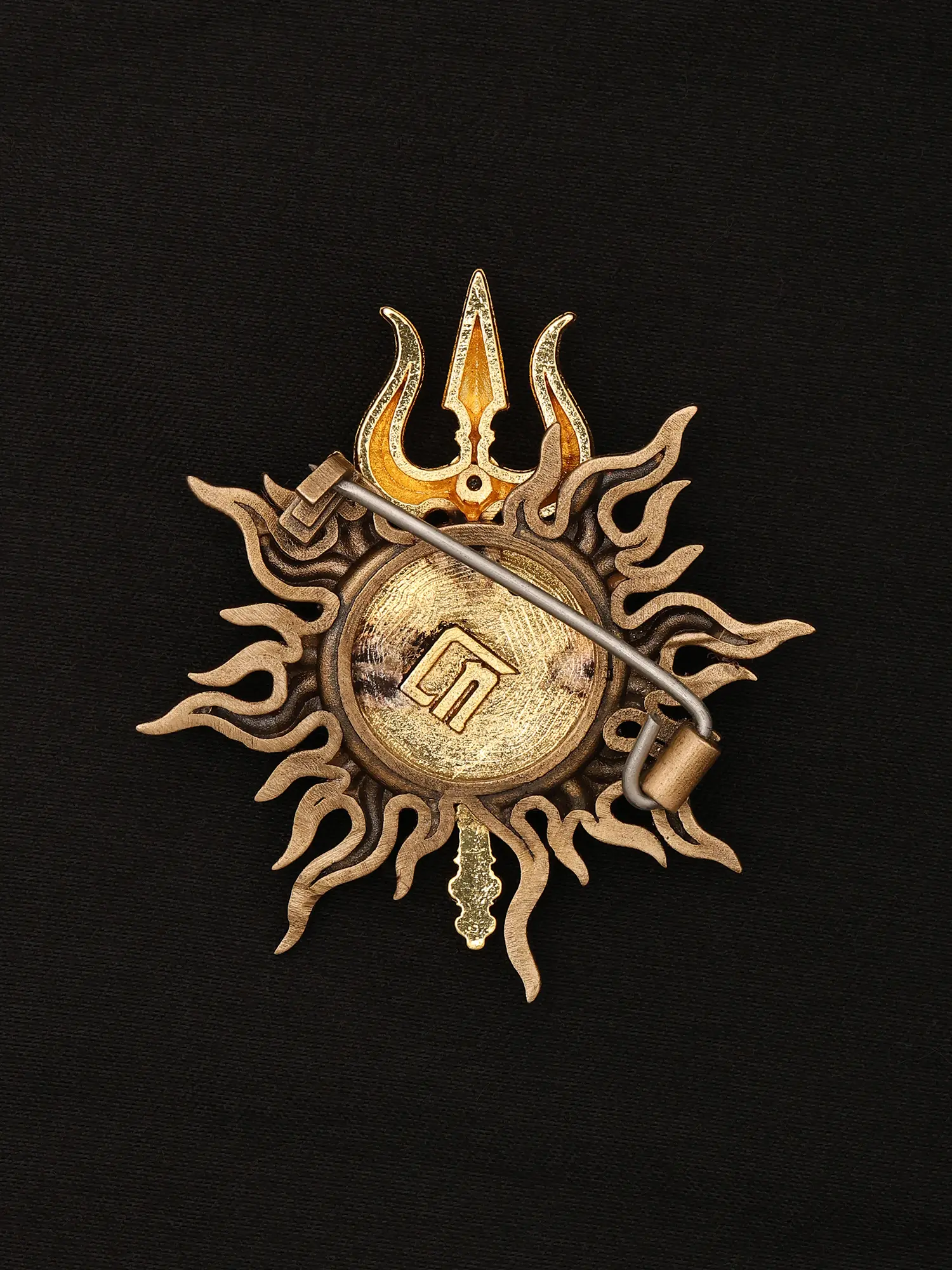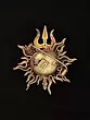 Divine Om Surya Chakra Gold Finish Trishul Brass Brooch