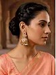 Stone Studded Goddess Lakshmi Engraved Jhumka