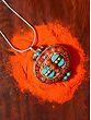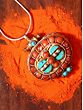 The Dorje prayer box is a miniature pendant that is used as a keepsake since old times. The Tibetan Buddhists utilized the case as a receptacle for their ordained materials, which includes written prayers, magical charms, and healing herbs. They wear this amulet box around their neck or their waist. This enticing amulet is embossed in coral red and turquoise blue in the middle. This masterpiece is remarkable in appeal. Spiritual and ineffable pendant embossed in gemstone would surround you with positivity and zeal.
