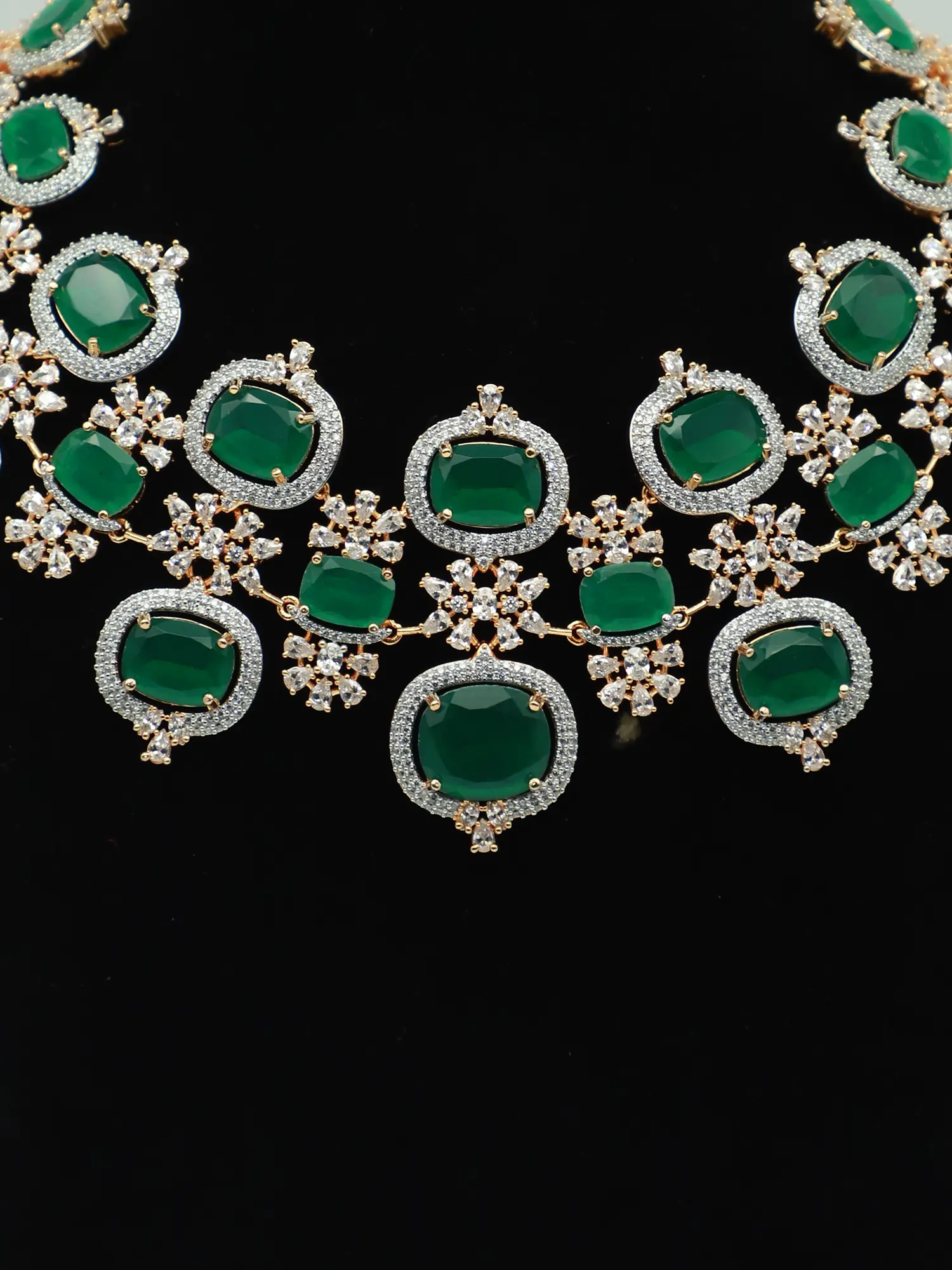Elegant American Diamond Stone Studded Choker Necklace With Earrings And Mangtika