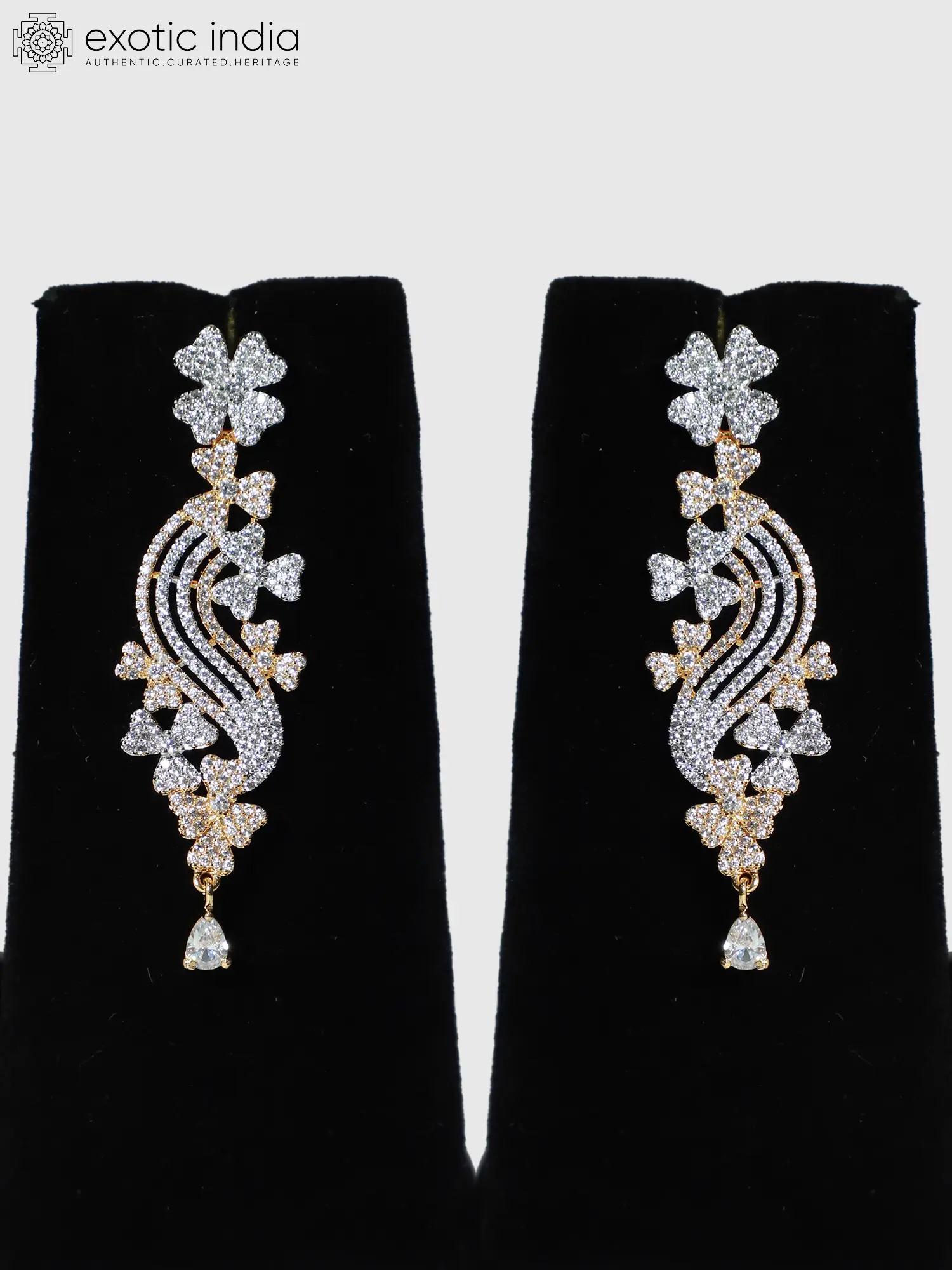 Elegant Floral Design Long American Diamond Necklace Set With Earrings