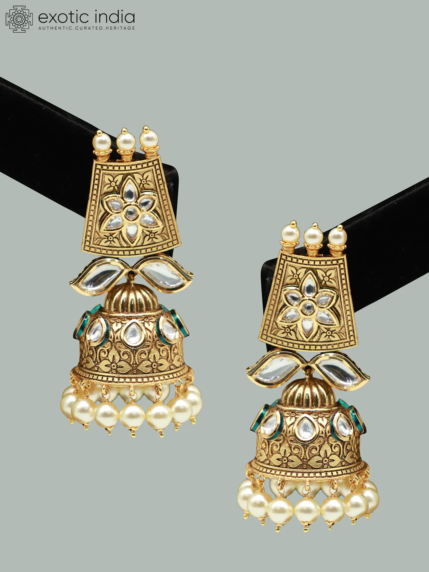 Traditional Long Necklace Set In Elegant Look With Kundan And Hanging Beads For Women