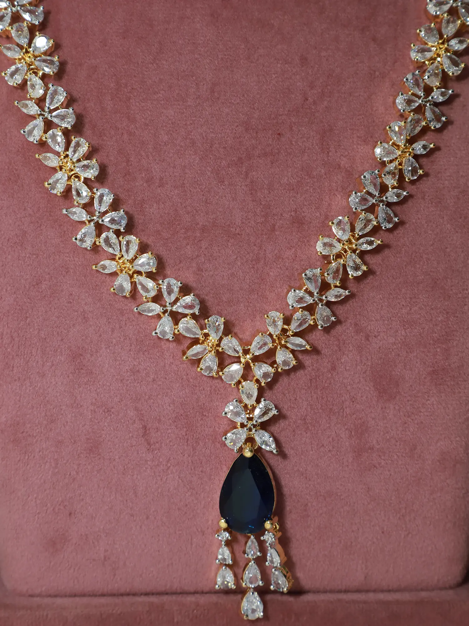 Elegant American Diamond Stone Studded Necklace With Matching Earrings
