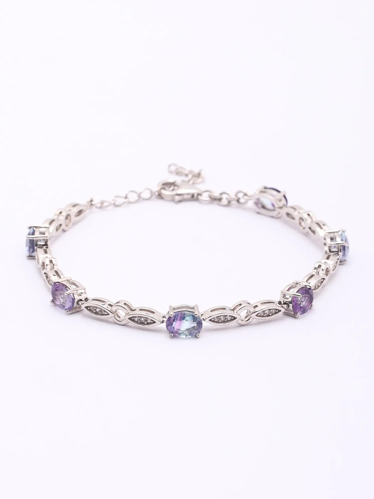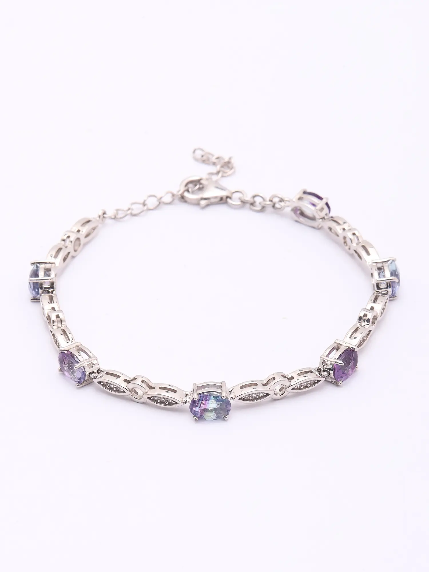 Oval Blue Sapphire & Cubic Zirconia Sterling Silver Bracelet