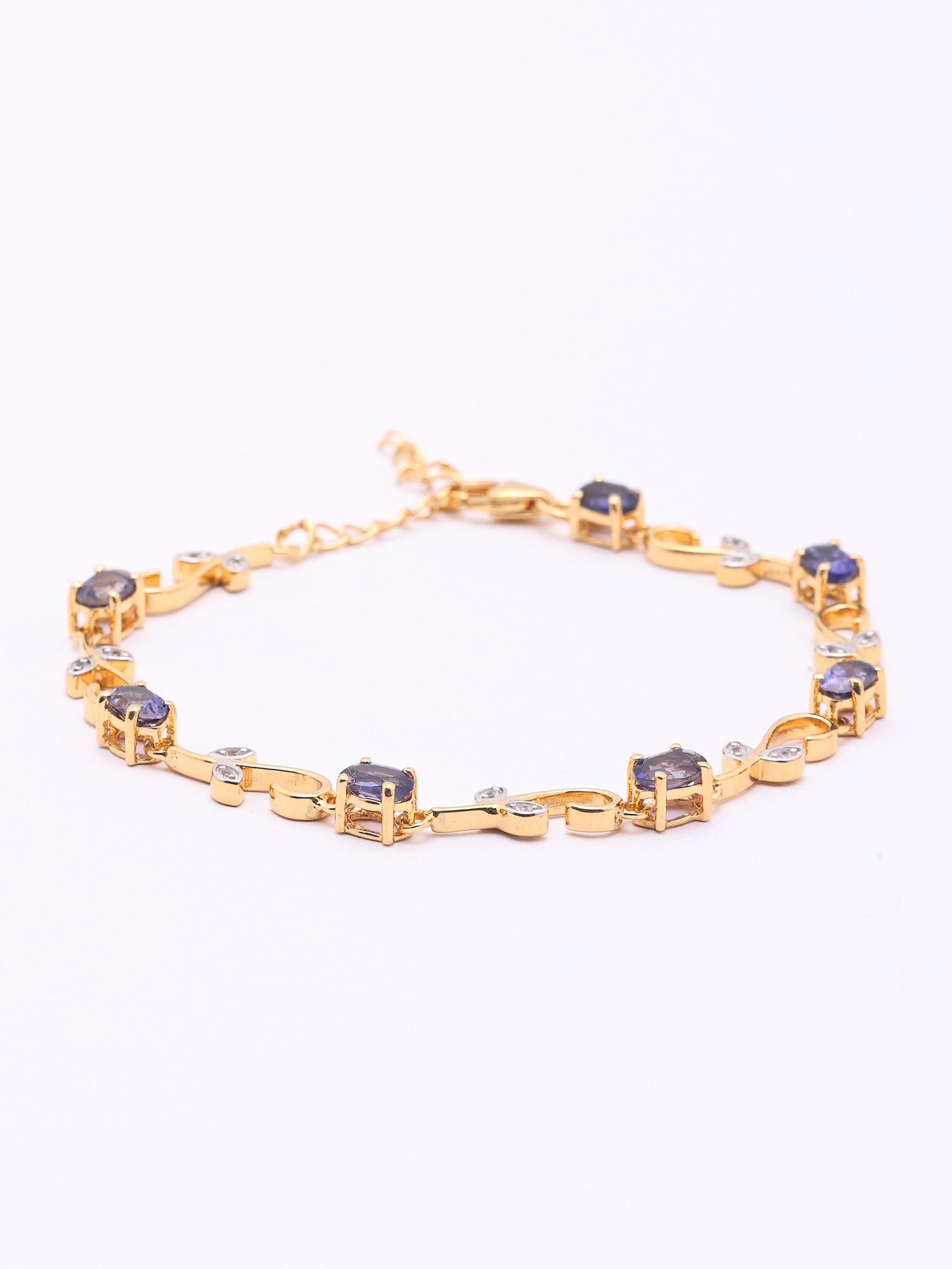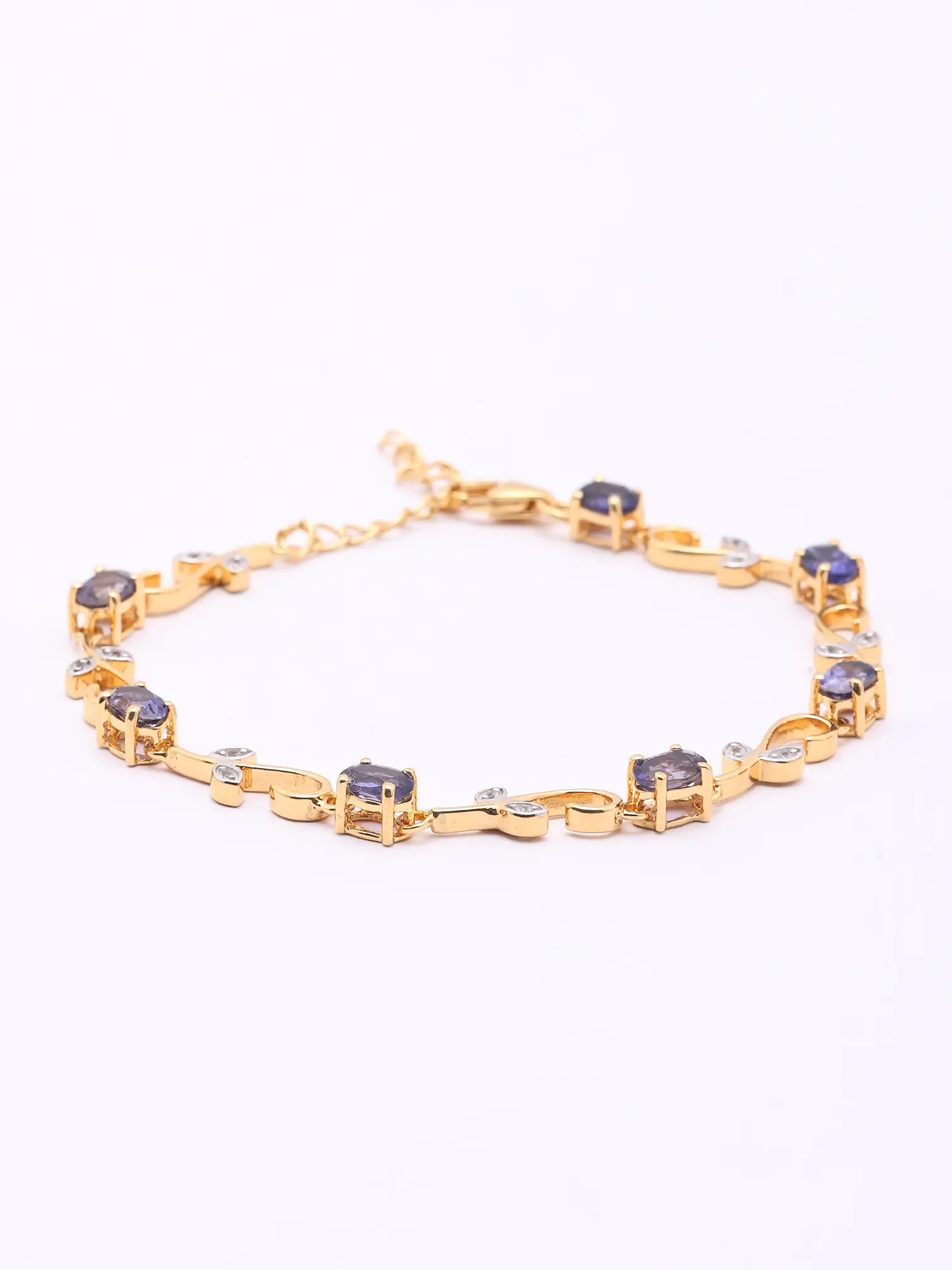 Faceted Blue Sapphire Sterling Silver Bracelet with Cubic Zirconia Accents