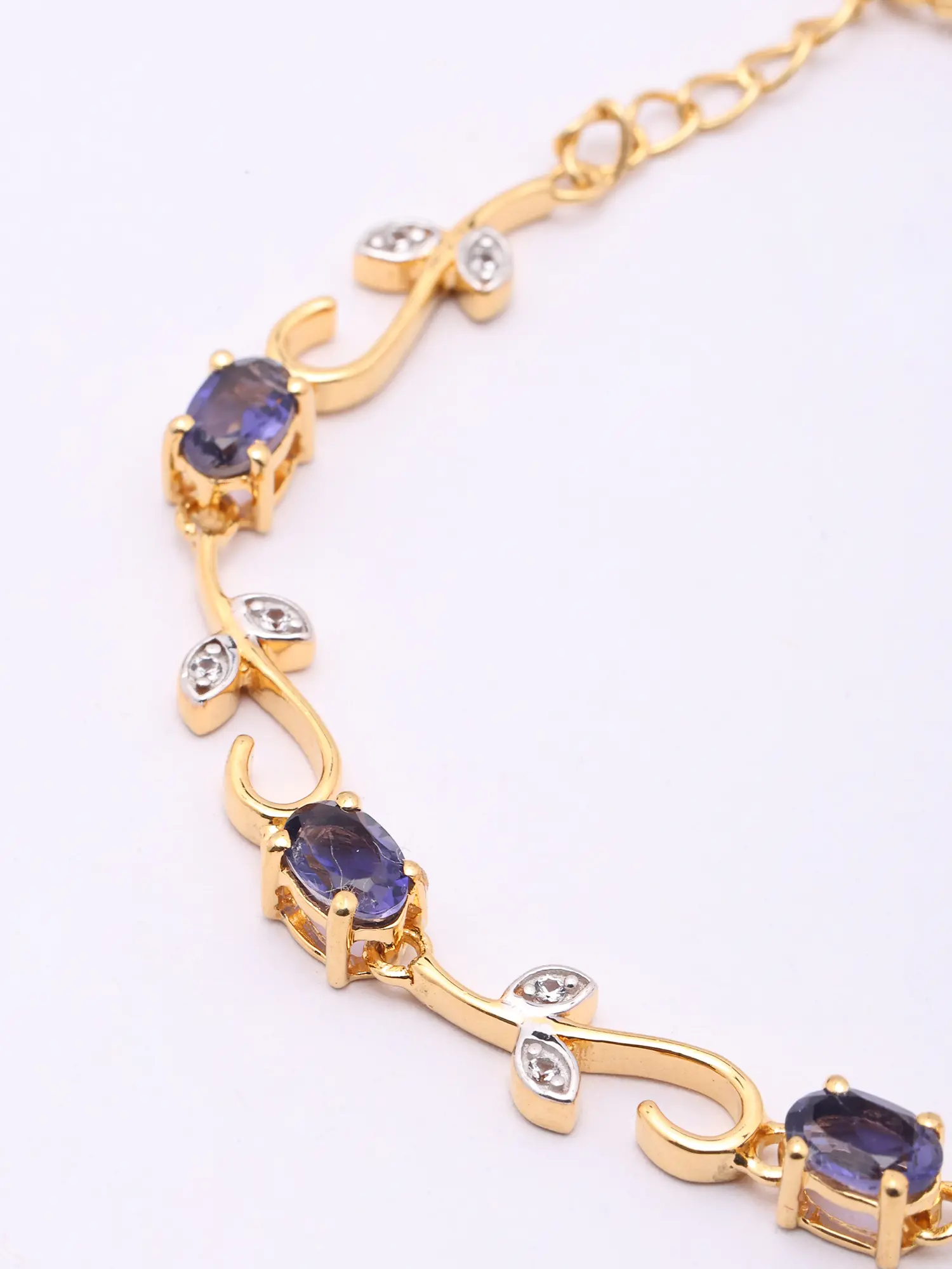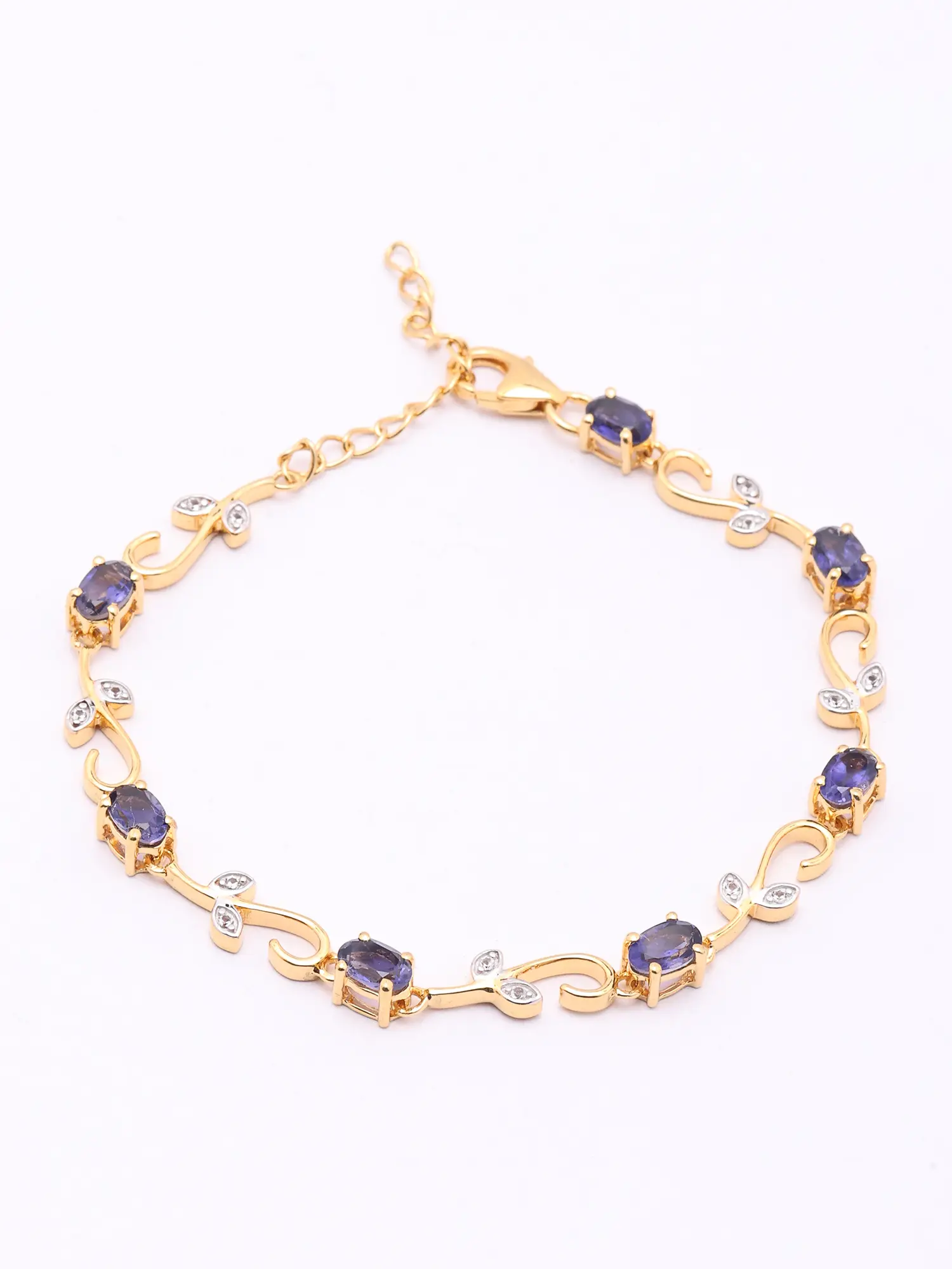 Floral Vine Bracelet with Faceted Blue Sapphire and Cubic Zirconia