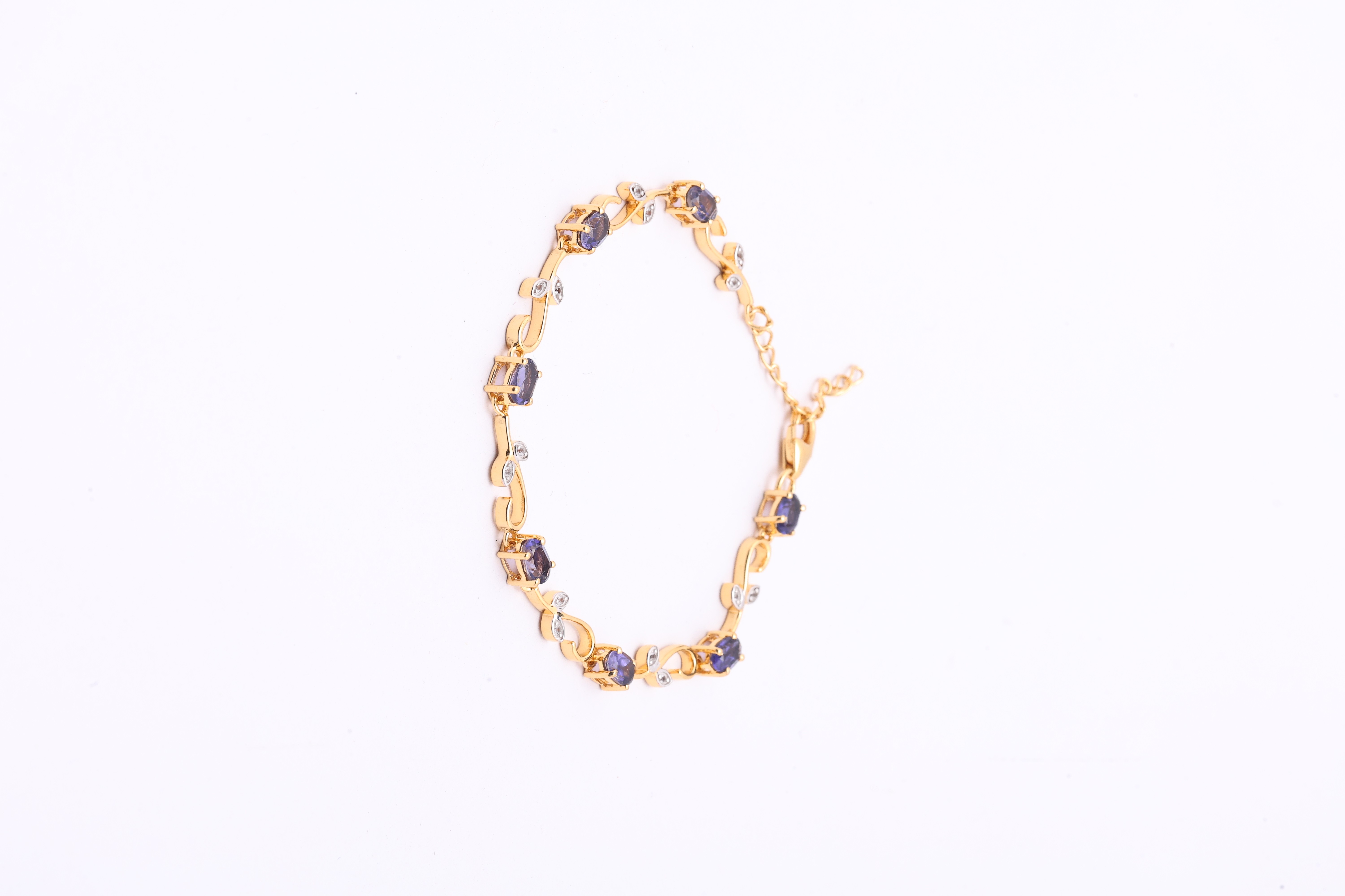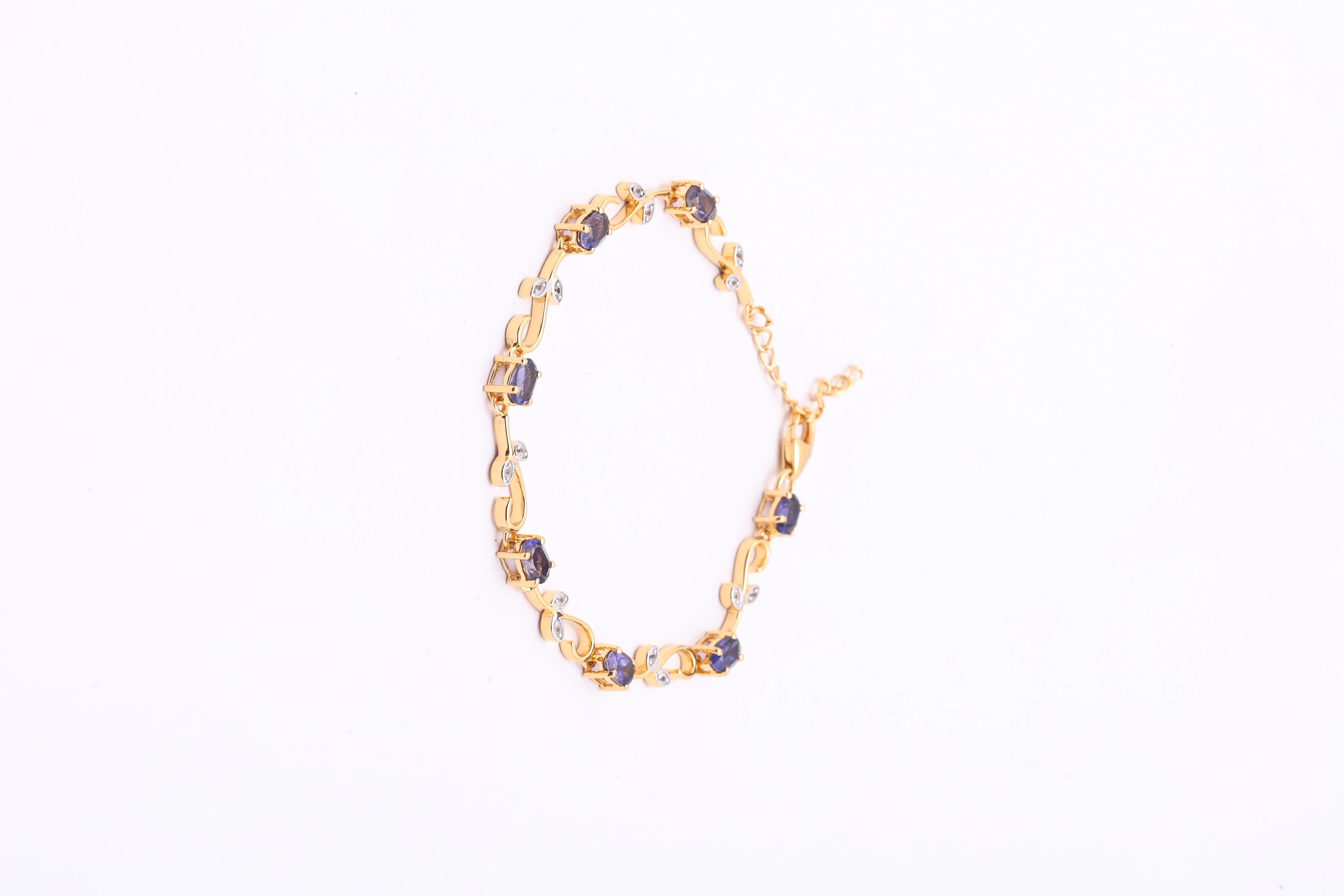 The centerpiece of this creation lies in the carefully selected, faceted sapphires that punctuate its length. Their deep, mesmerizing hue, reminiscent of a twilight sky, is beautifully complemented by the subtle sparkle of accent stones, adding an ethereal glow. The overall design, measuring 6.8 inches in length, offers a comfortable and secure fit, gracefully draping around your wrist.