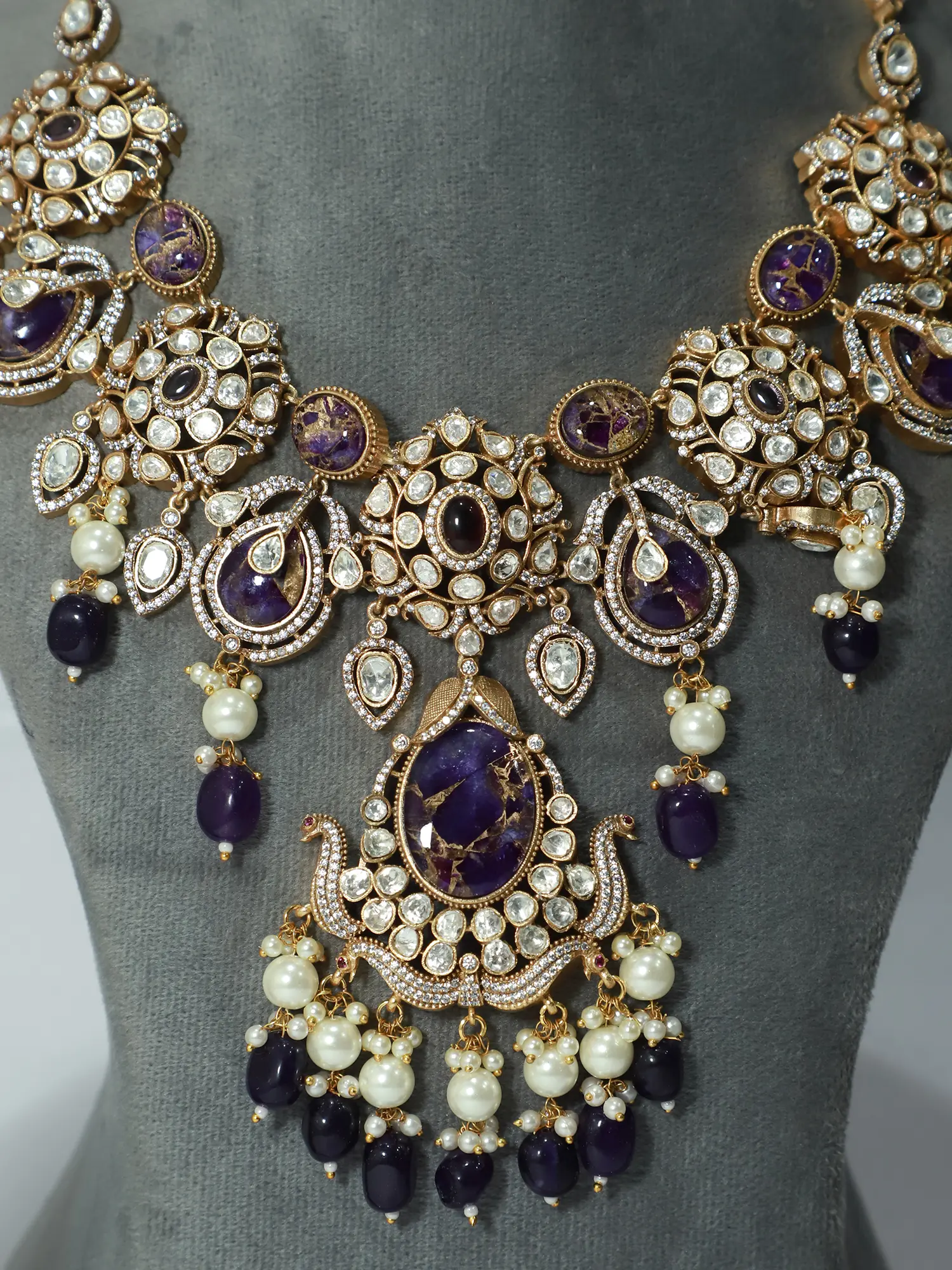 Stone Studded Polki Copper And Kundan Necklace Set With Earrings