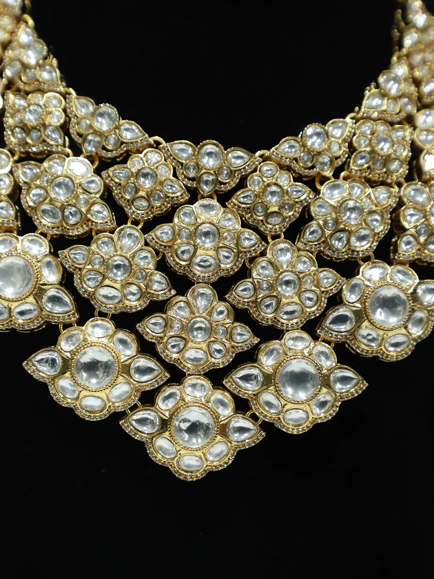 Multi Layered Floral Design Stone Studded American Diamond Necklace Set With Earrings
