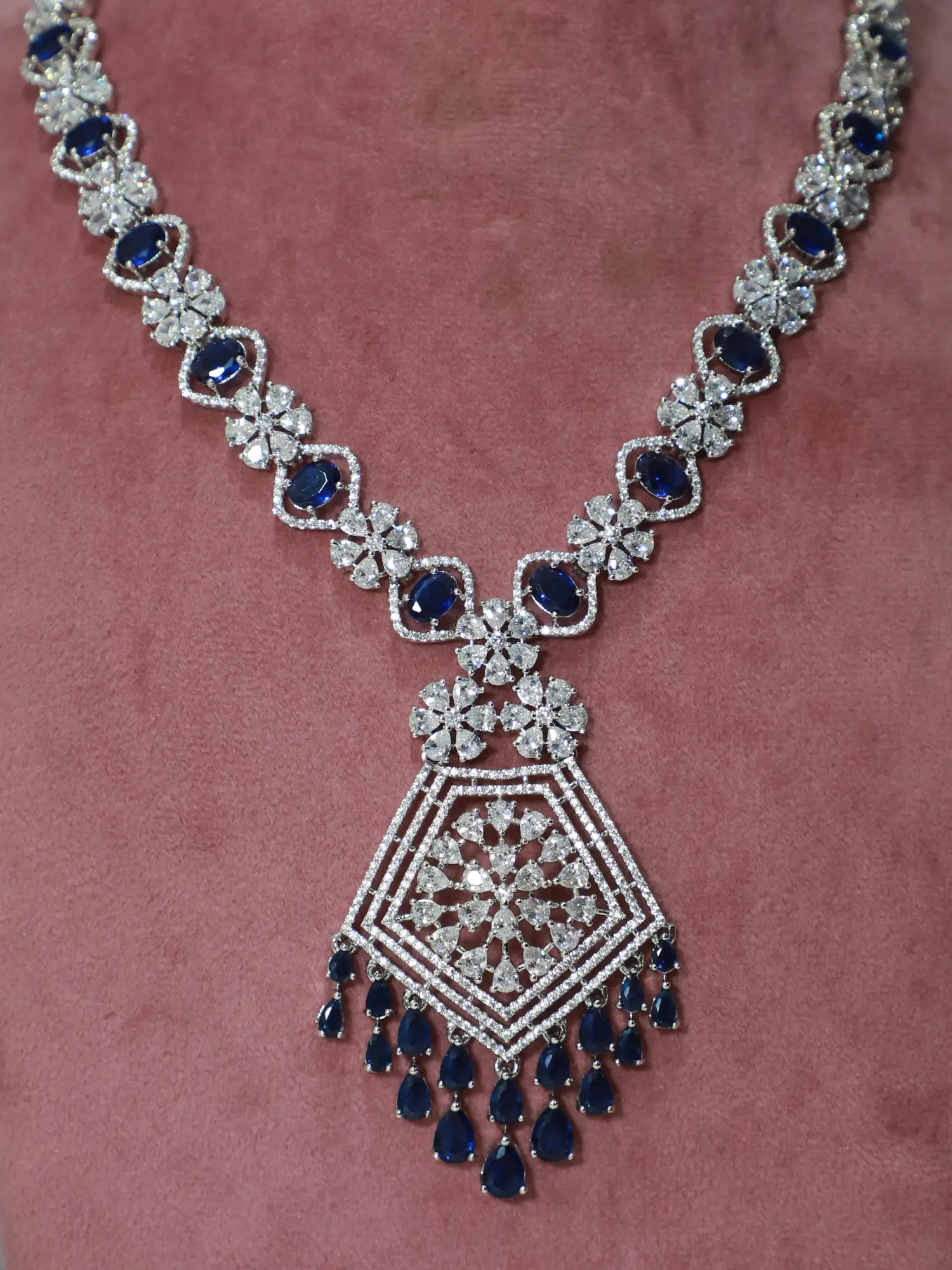 Elegant Floral Design Long American Diamond Necklace Set With Earrings