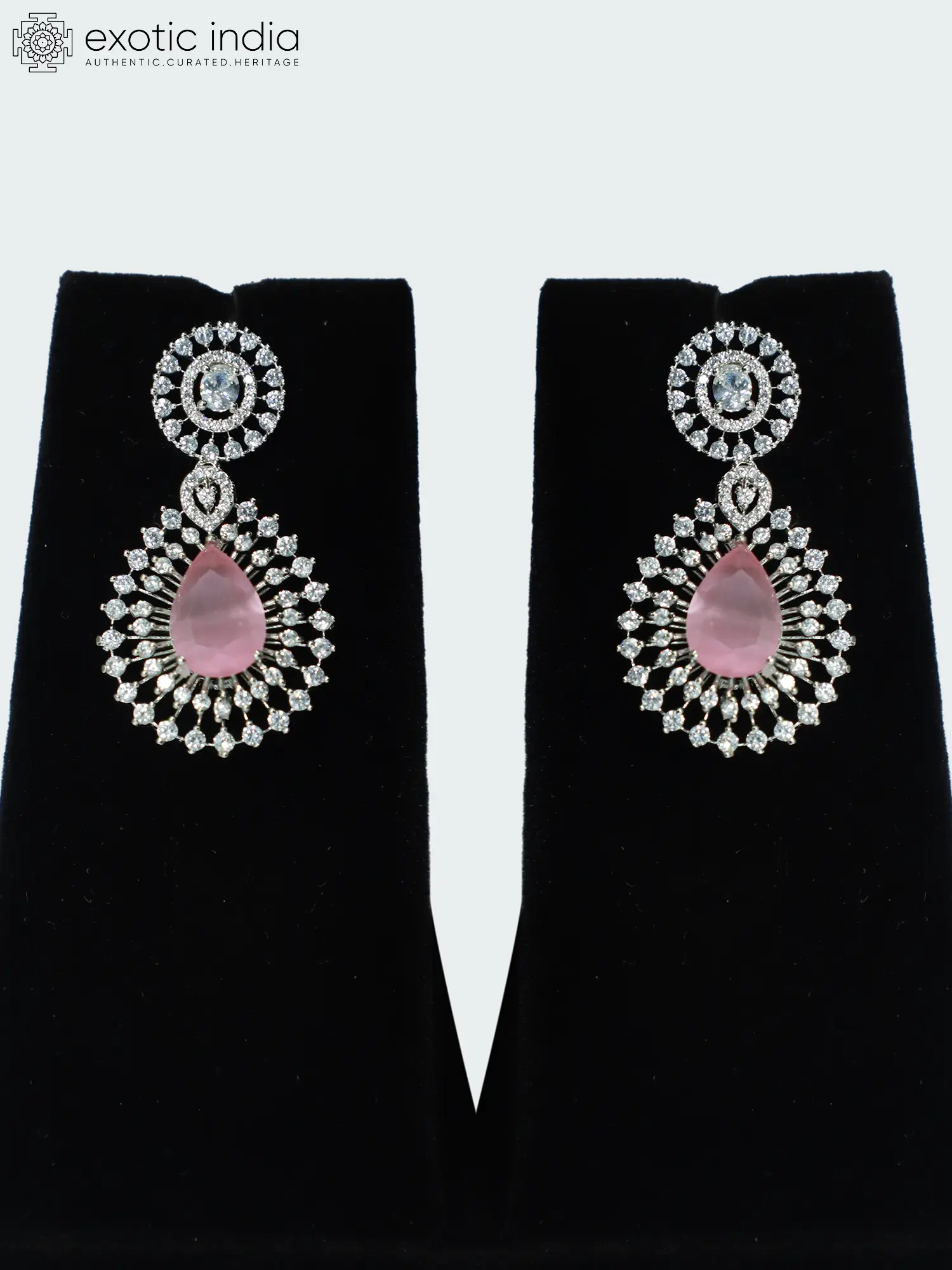 Elegant Floral Design Long American Diamond Necklace Set With Earrings