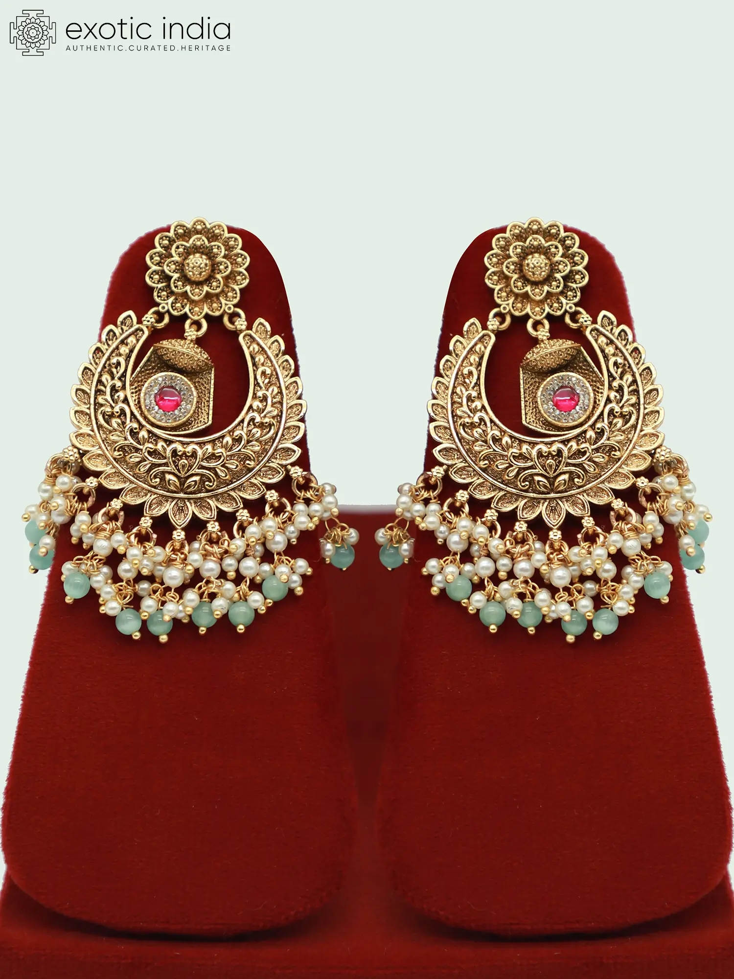 Embellished Carving Necklace Set With Attractive Mangtika And Earrings
